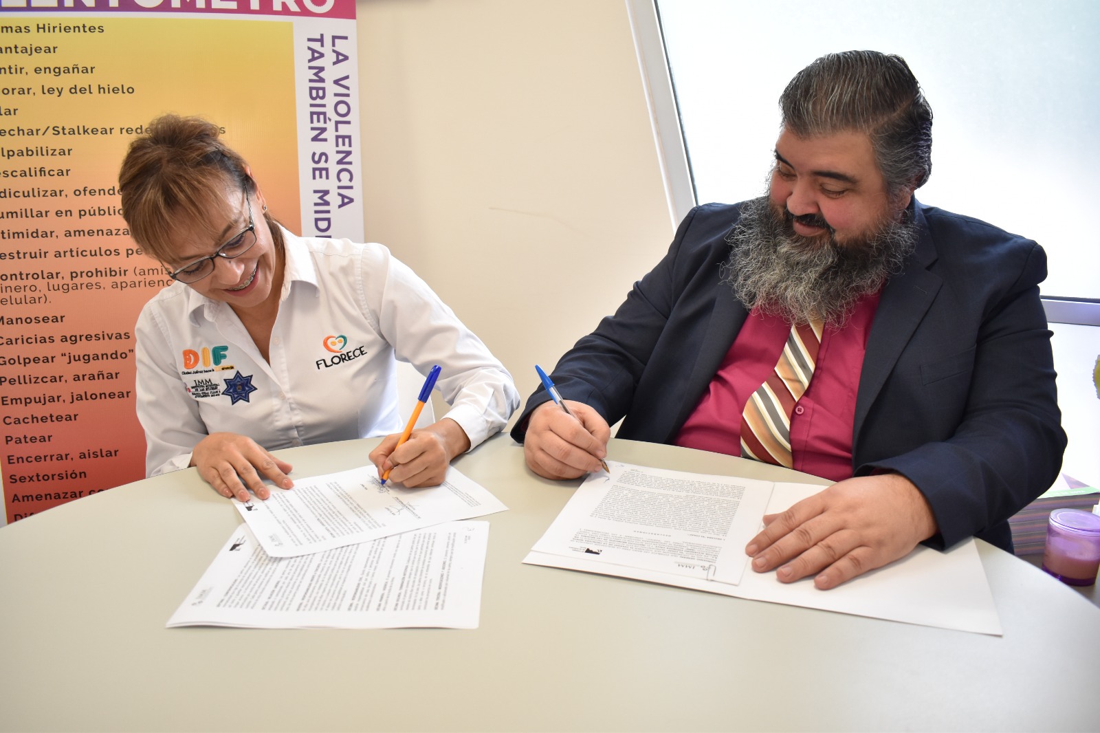 Este convenio fue firmado por la directora del Instituto Municipal de las Mujeres, Elvira Urrutia Castro y el presidente del COLEF, Víctor Alejandro Espinoza Valle.