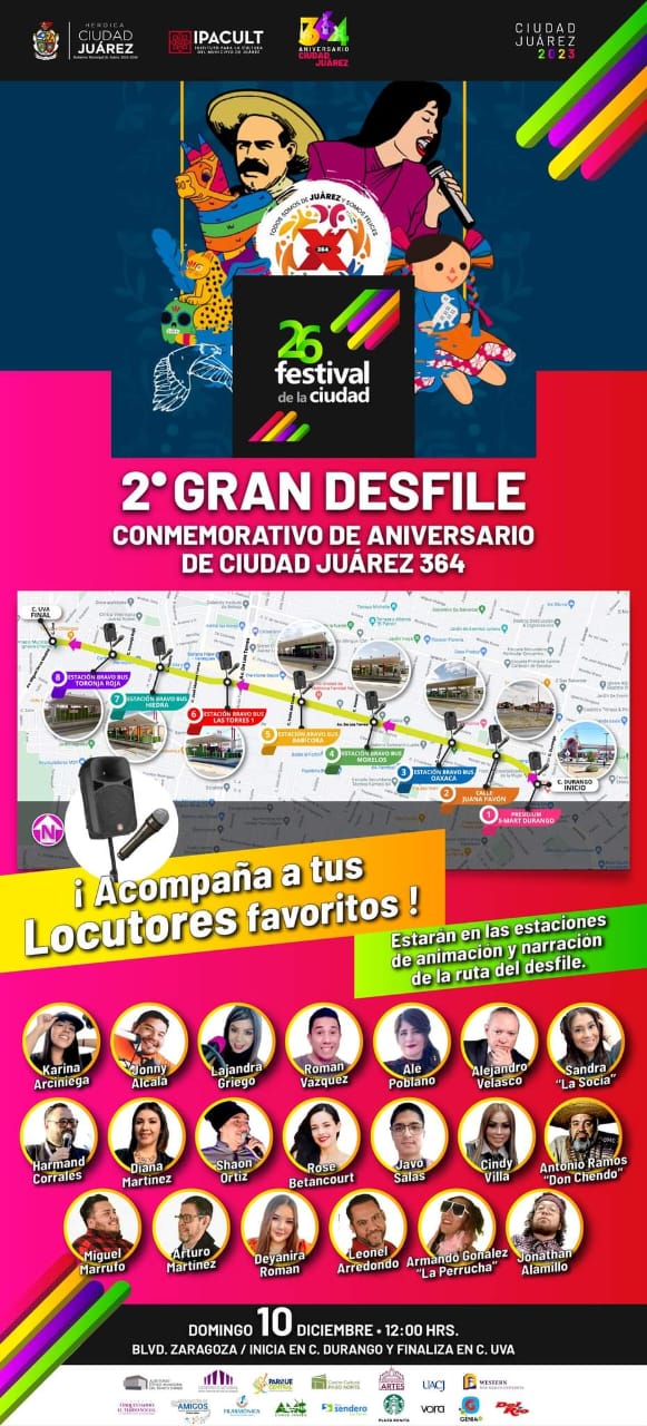 Este es el segundo año que se realizará el Gran Desfile Conmemorativo de la Ciudad, el cuál, recorrerá el bulevar Zaragoza, iniciando a las 12:00 del mediodía en la calle Durango y concluyendo en la calle Uva.