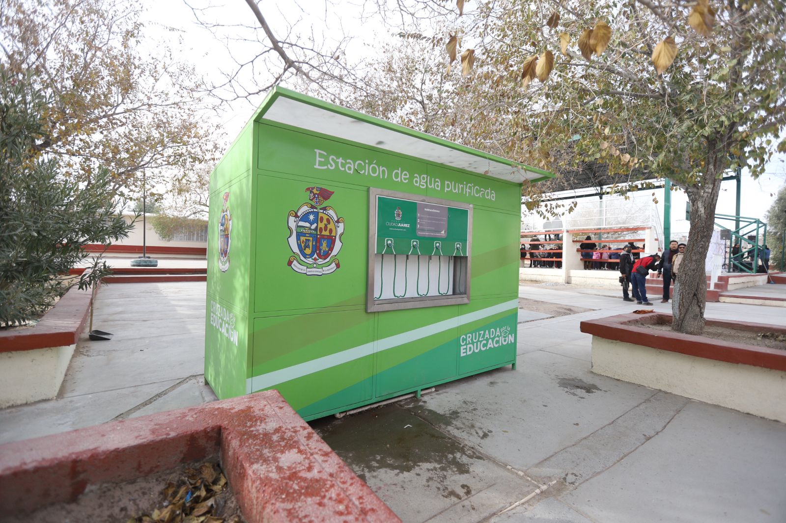 Este día el Presidente Municipal, Cruz Pérez Cuéllar, entregó las obras de rehabilitación de la Escuela Primaria Mahatma Gandhi, que consistieron en el arreglo del sistema eléctrico de todo el plantel, resane y pintura, así como la instalación de un dispensador de agua, con una inversión de 989,400 pesos.