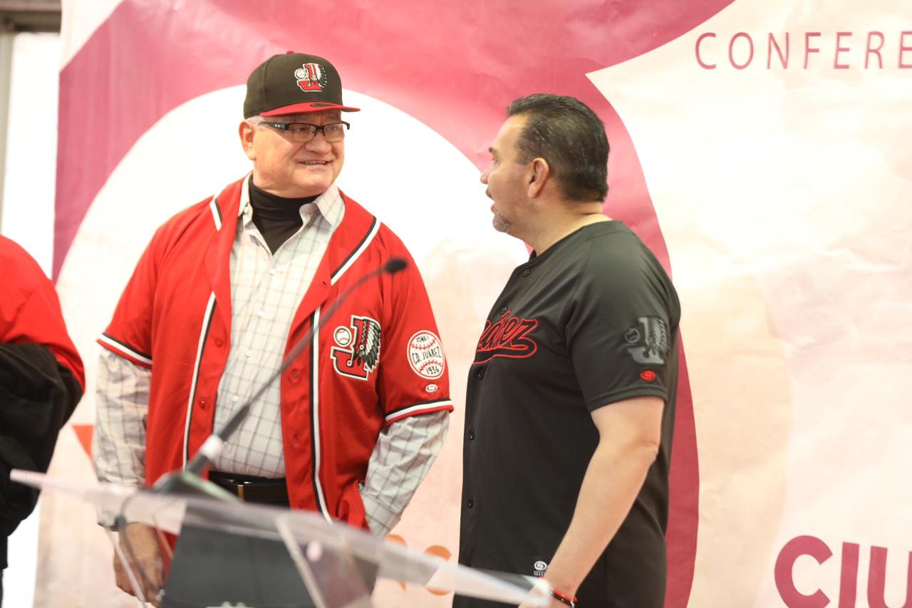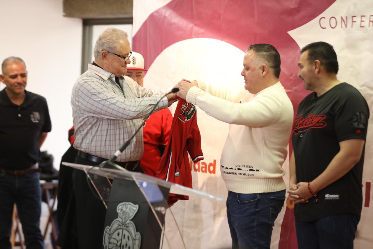 Durante la conferencia de prensa, el alcalde Cruz Pérez Cuéllar y comitiva del béisbol, hicieron entrega de la playera y gorra oficial al nuevo entrenador en jefe de Indios de Juárez, Ricardo Fernández.
