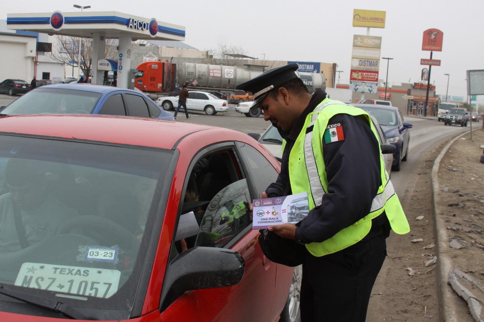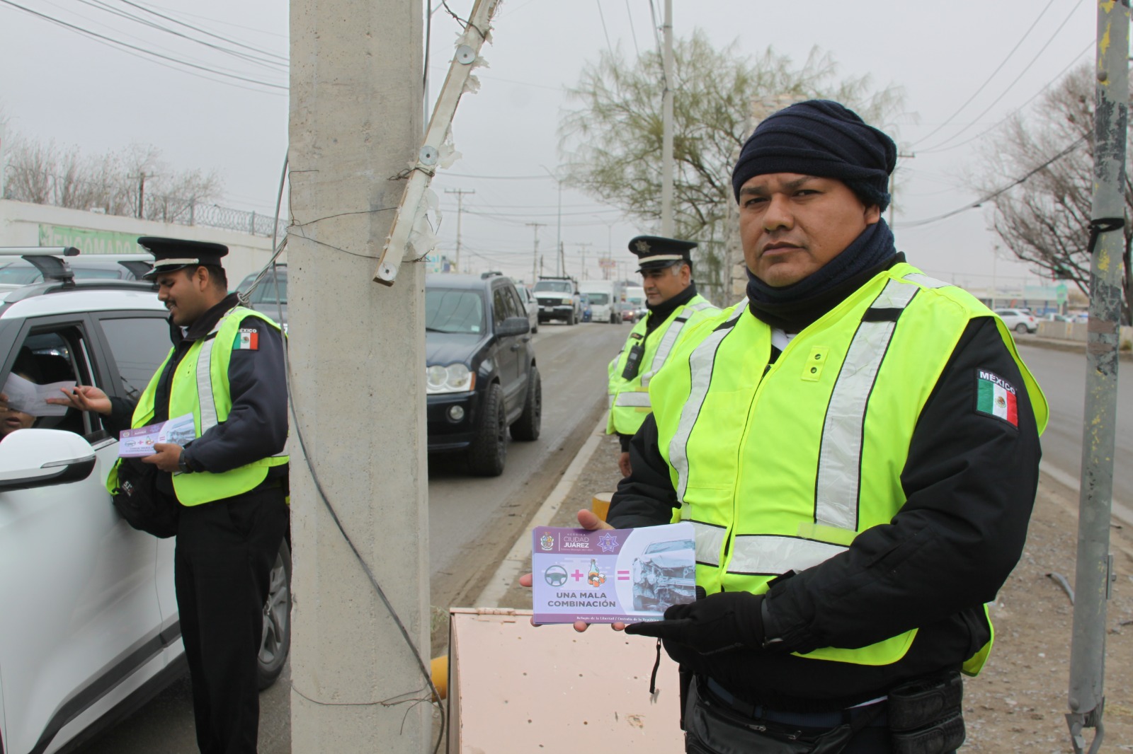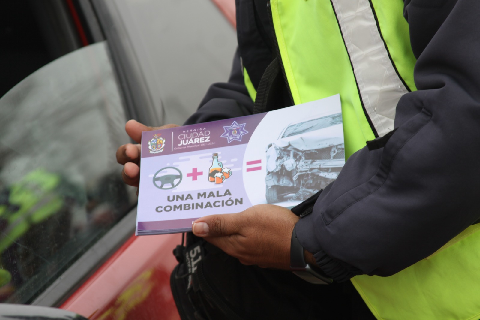 Por medio de la campaña de volanteo denominada "Volante más alcohol, una mala combinación" realizada esta mañana en la intersección de las calles Rivera del Bravo y Juárez- Porvenir, los policías viales hicieron referencia a la mala decisión que como conductores tomamos al ingerir bebidas alcohólicas en las tradicionales posadas o fiestas de temporada- para luego trasladarnos embriagados a bordo de un vehículo con rumbo a nuestros respectivos hogares, pero poniendo así en riesgo no solo nuestra integridad física, sino también la de nuestras familias y acompañantes.