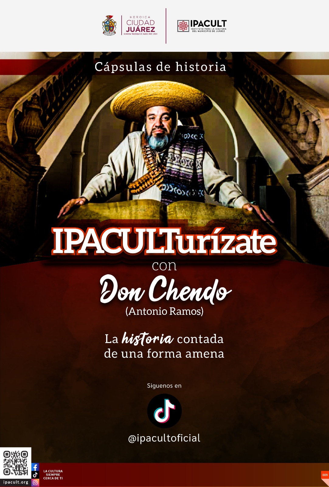 Tal es el caso de ??IPACULTurízate con Don Chendo?, cápsulas de historia las cuales se comparten en la plataforma de TikTok, y en las que el personaje principal es encarnado por el historiador Antonio Ramos.