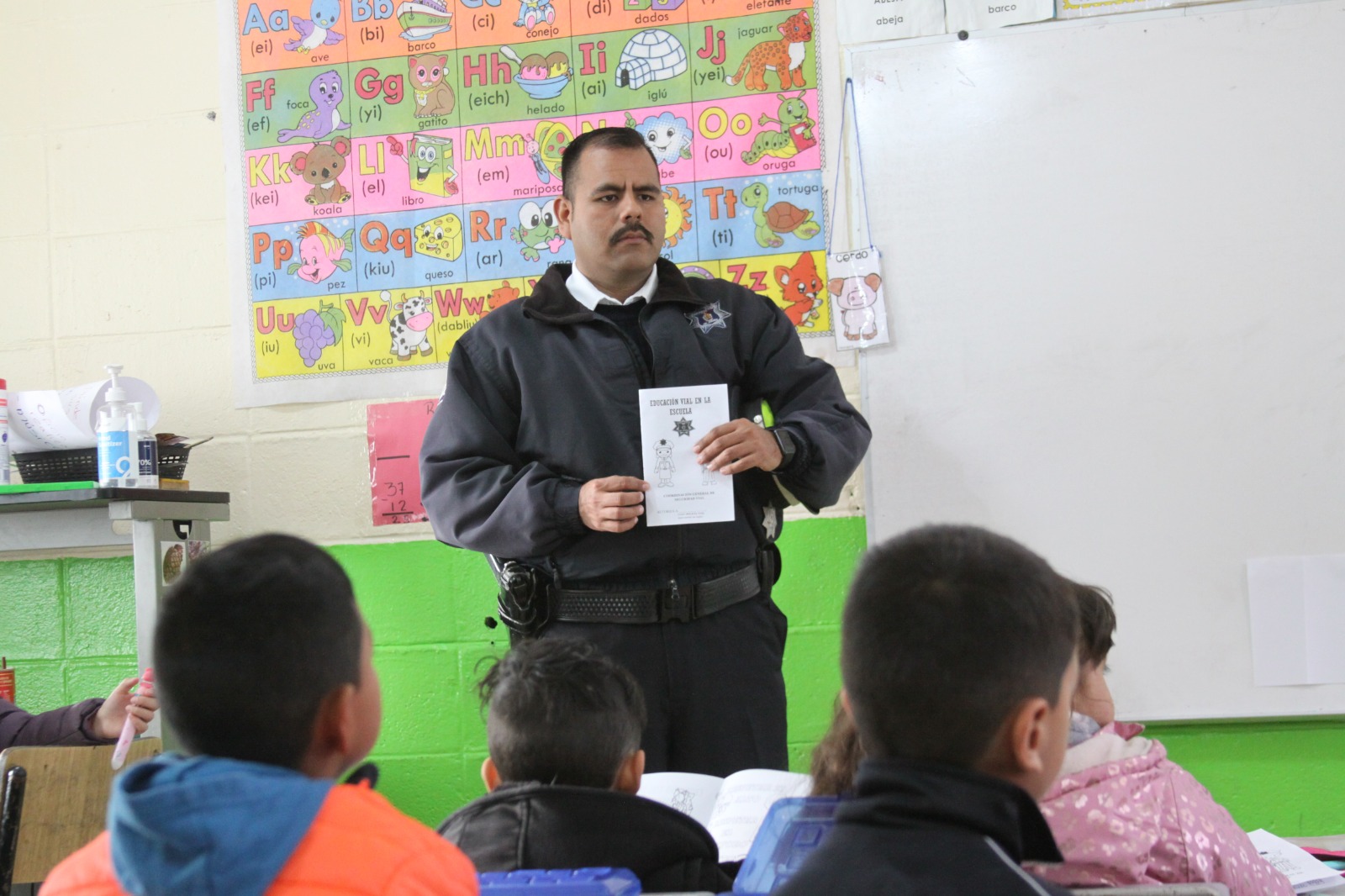 Elementos de la Coordinación General de Seguridad Vial, destacamentados en el área de Educación Vial, llevaron la plática denominada Alumno Vial a 348 estudiantes de la Escuela Primaria Cuitláhuac, ubicada en las calles Yaquis y Chamulas, de la colonia Azteca.