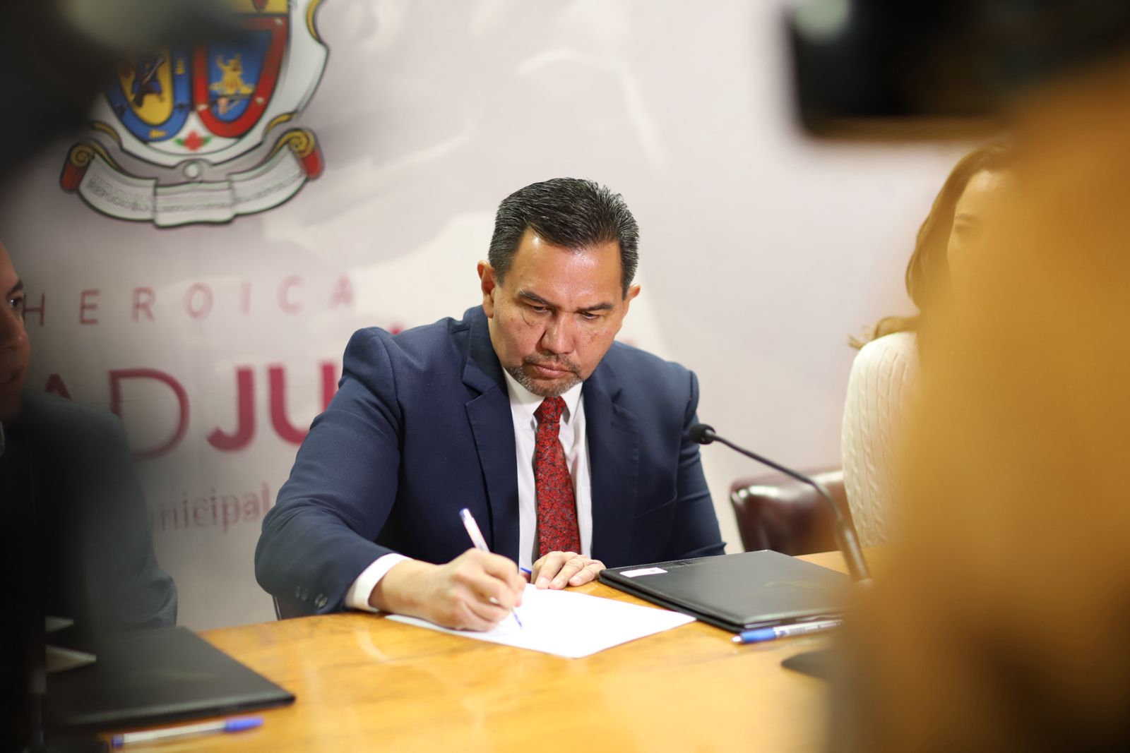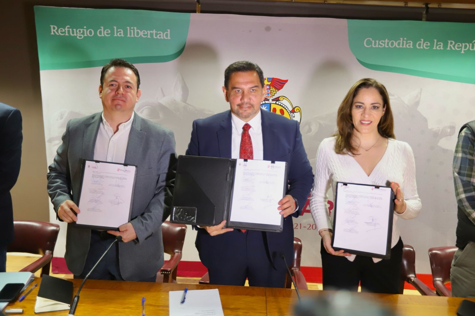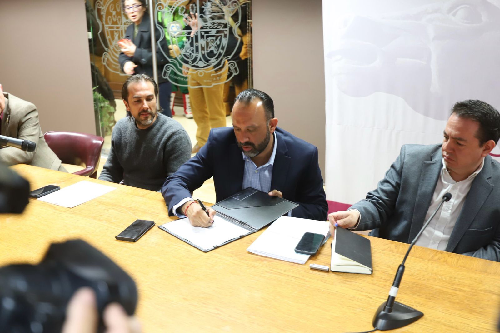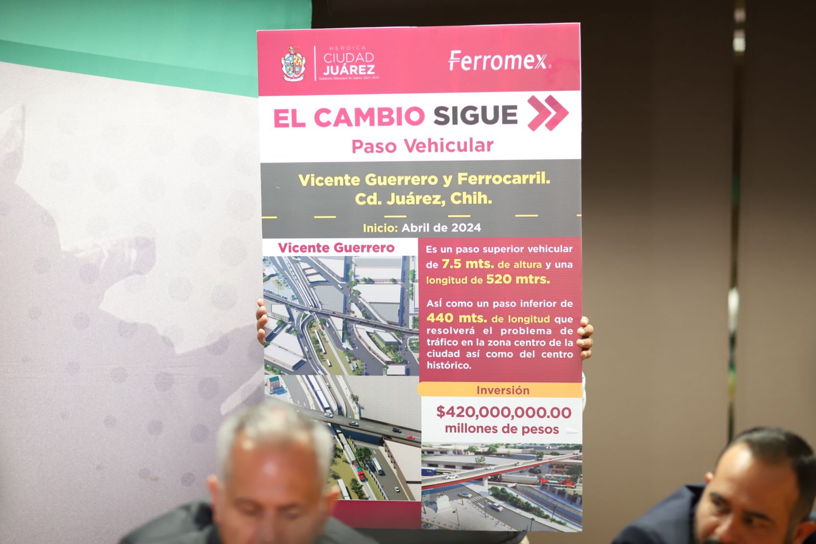 El Gobierno Municipal firmó un convenio de colaboración con el Grupo México Transportes Ferromex, para llevar a cabo la obra de un paso vehicular en la avenida Vicente Guerrero y calle Francisco Villa, misma que permitirá resolver el problema de tráfico en la Zona Centro cuando circule el tren.