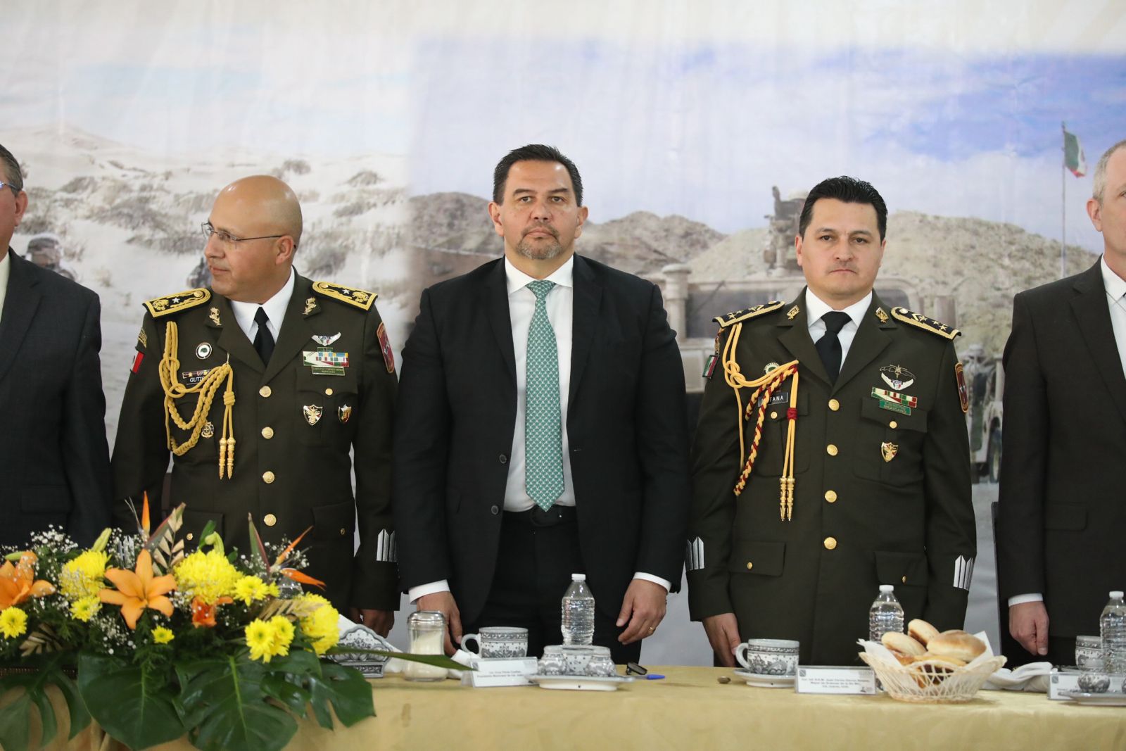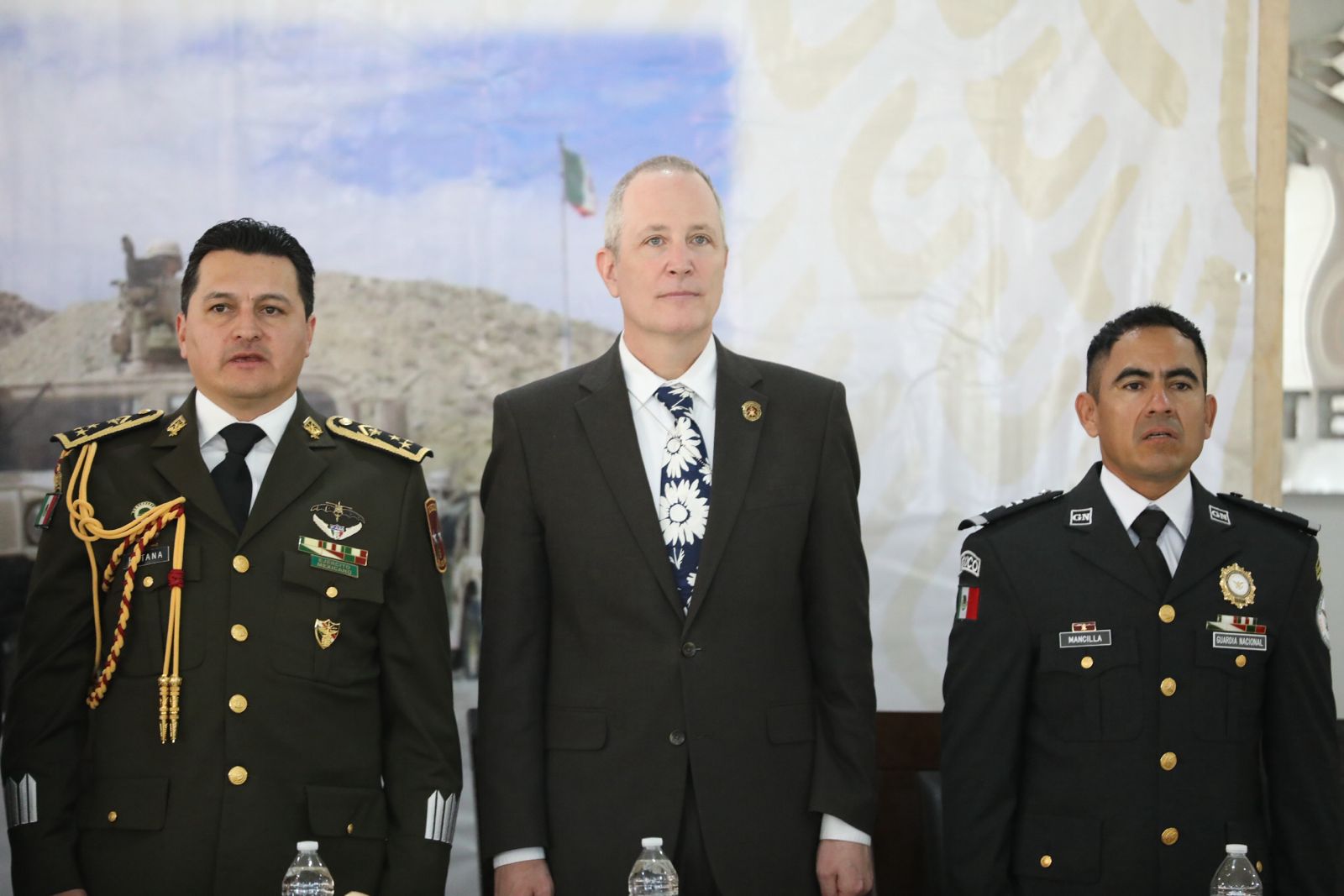 Además el comisionado Hugo Armando Parada, de Seguridad Pública del Estado; Manuel Alfonso Marín, de Instituto Nacional de Migración; César Omar Muñoz, secretario de Seguridad Pública Municipal; Ricardo Hernández Lecarda, cónsul adscrito del Consulado General de México en El Paso, Texas y César Tapia Martínez, coordinador de Seguridad Vial.