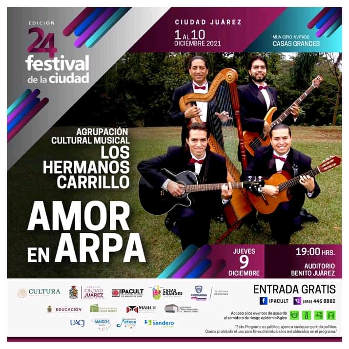 Hoy se presenta "Amor en Arpa" con la agrupación musical "Hermanos Carrillo" a las 7:00 de la tarde en el Auditorio Cívico Benito Juárez