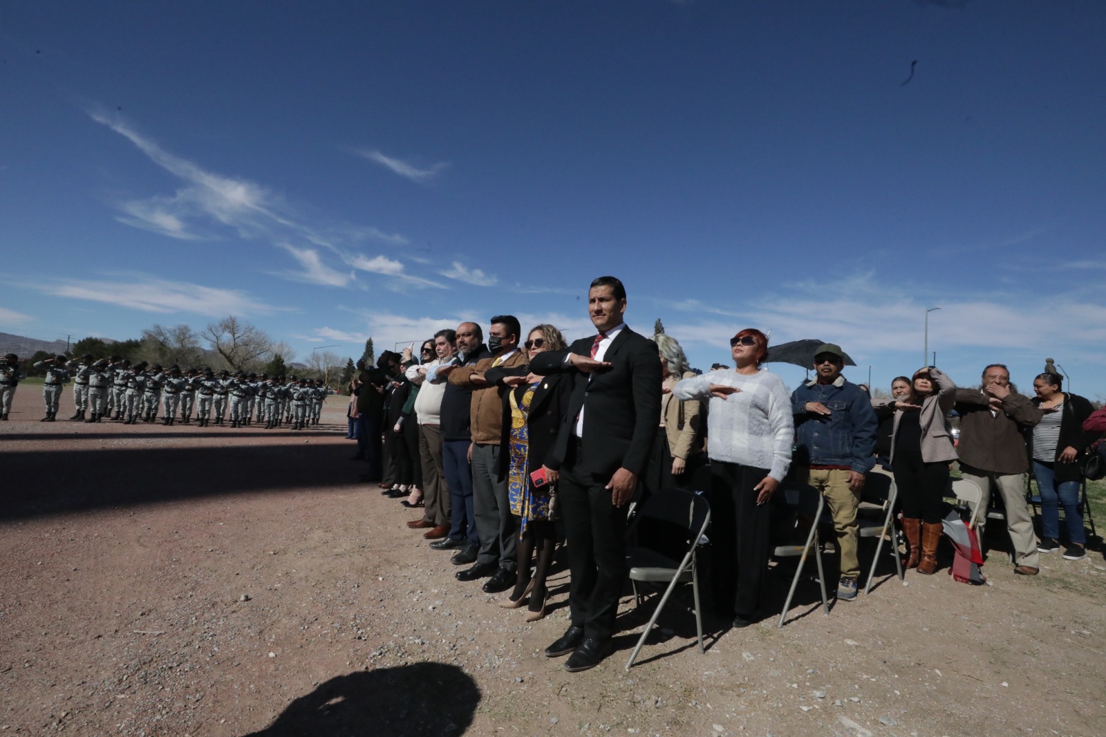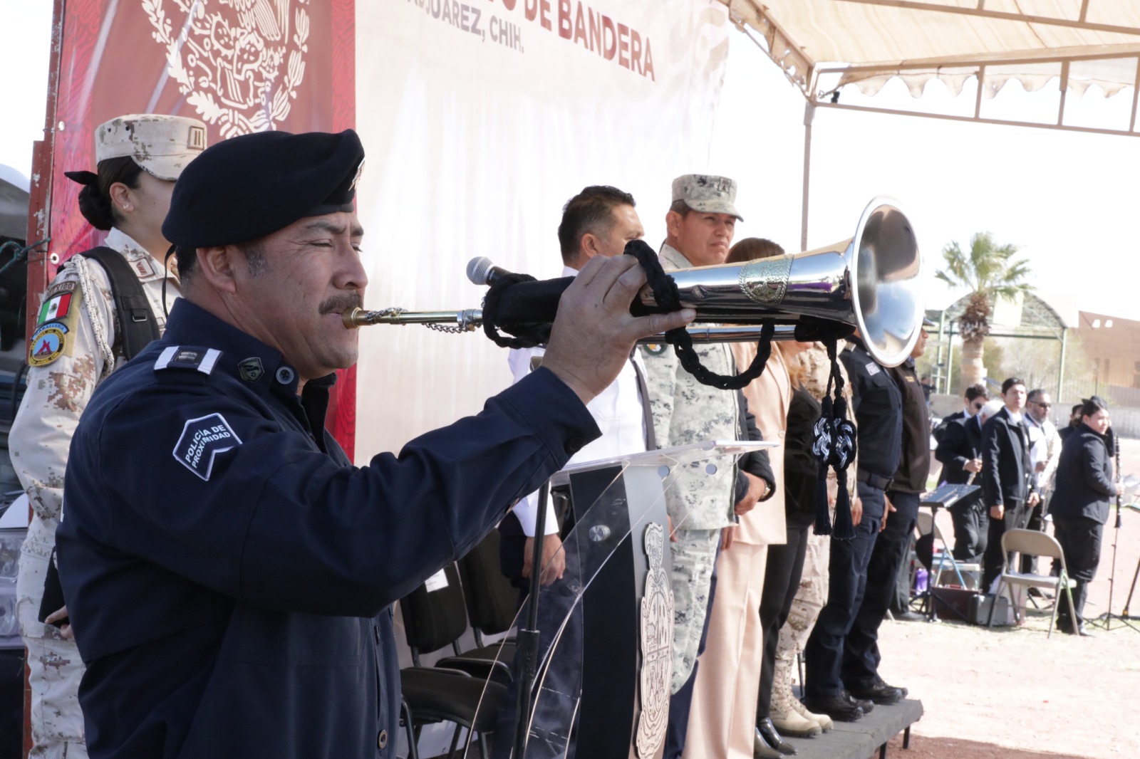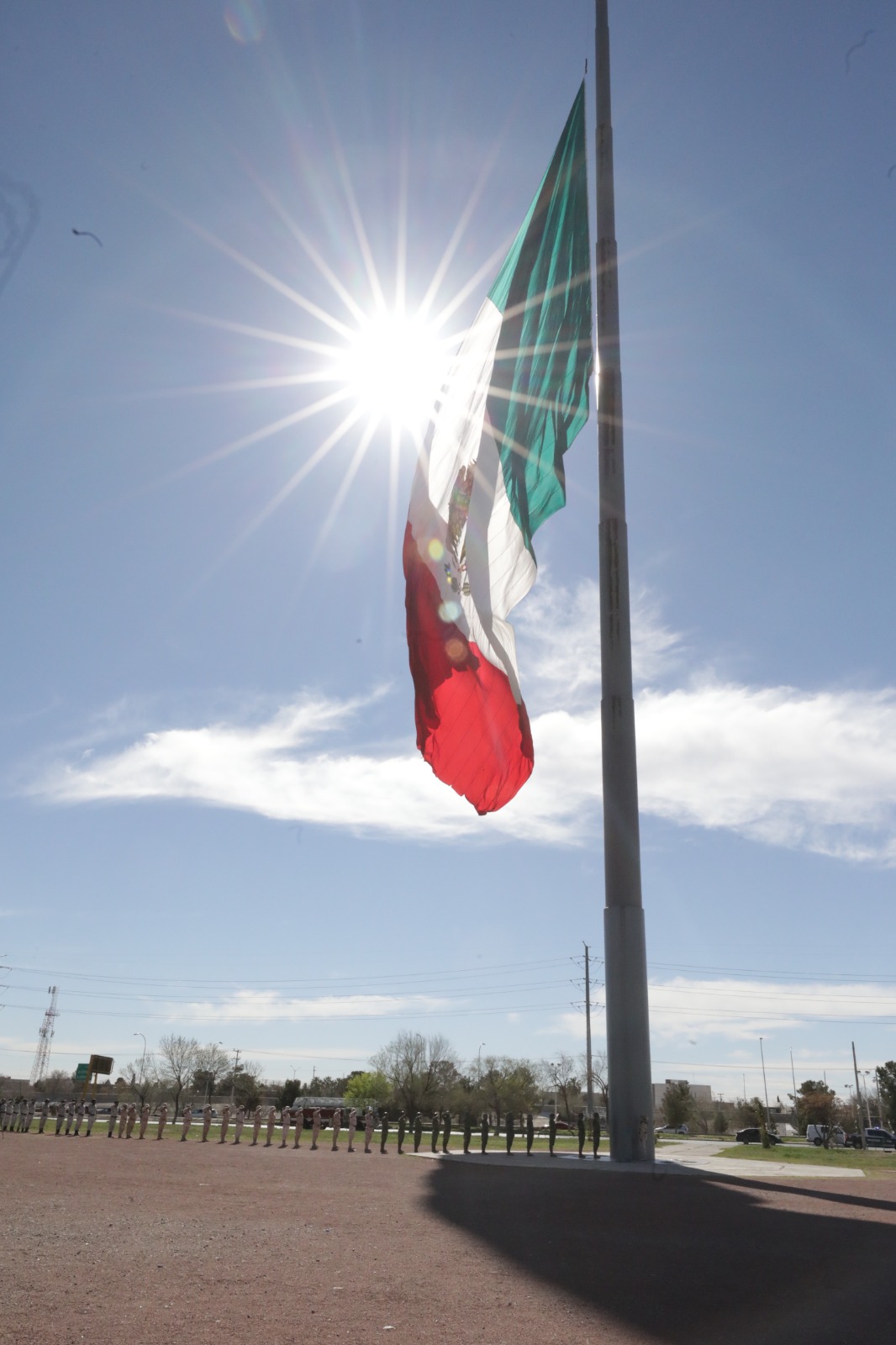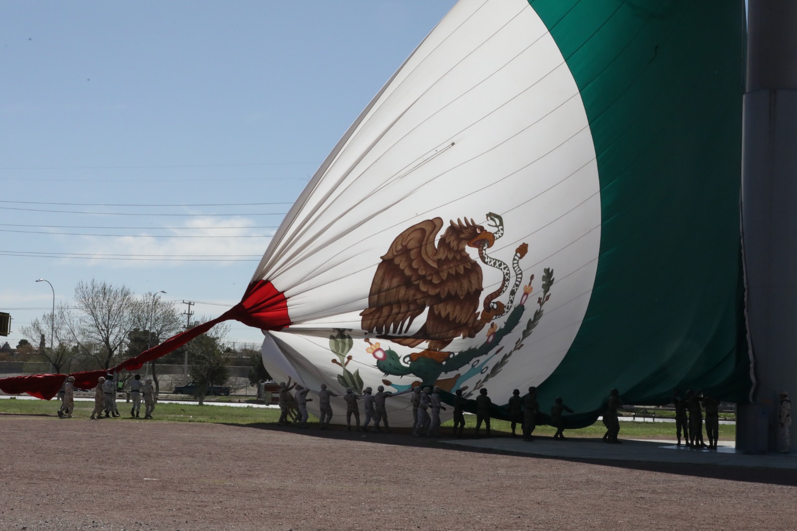 El evento protocolario tuvo como sede la megabandera en la zona de El Chamizal, donde se rindieron los honores a la enseña patria y se entonó el Himno Nacional.