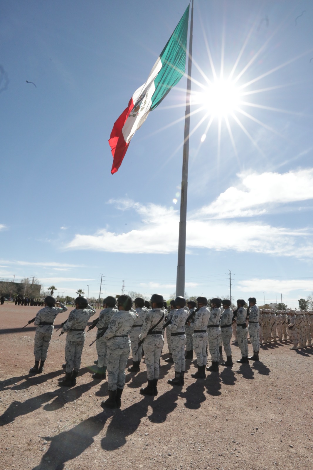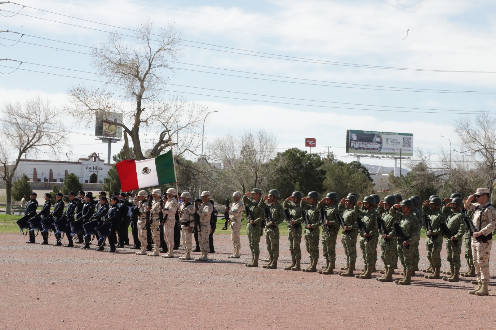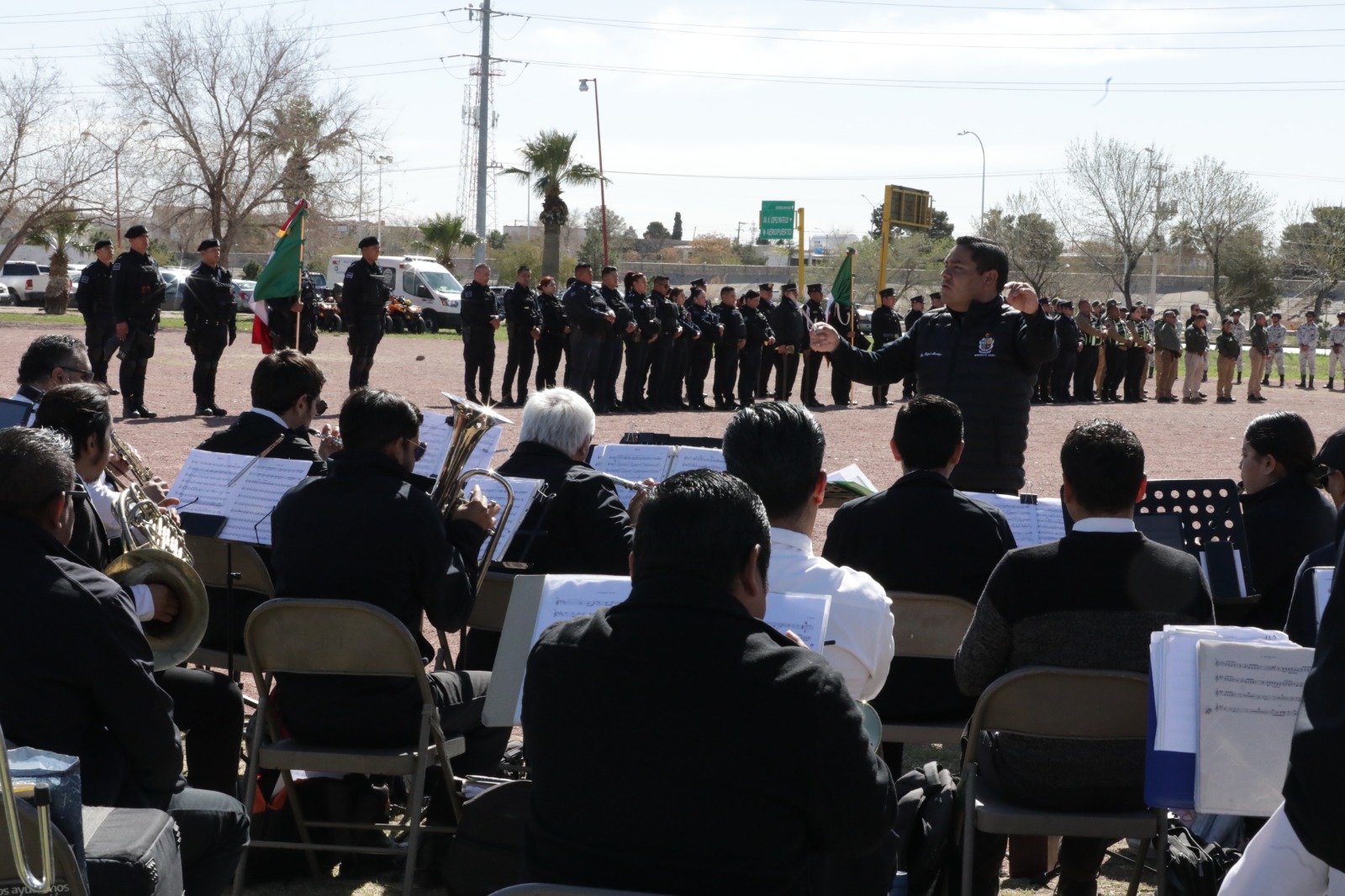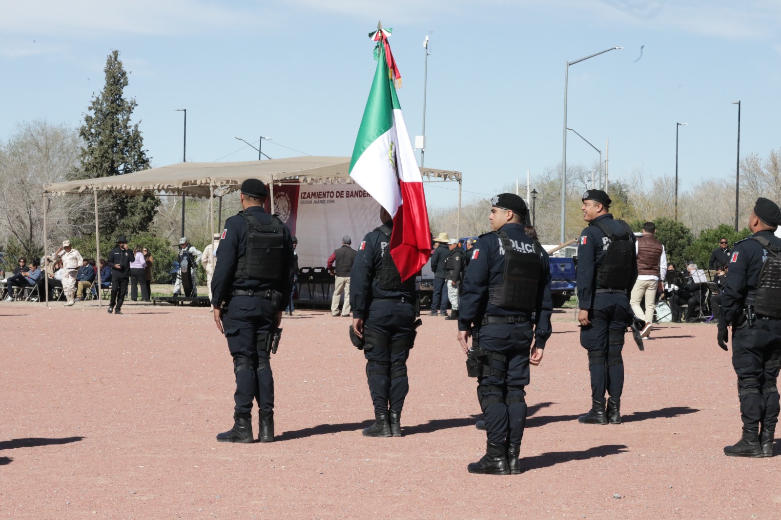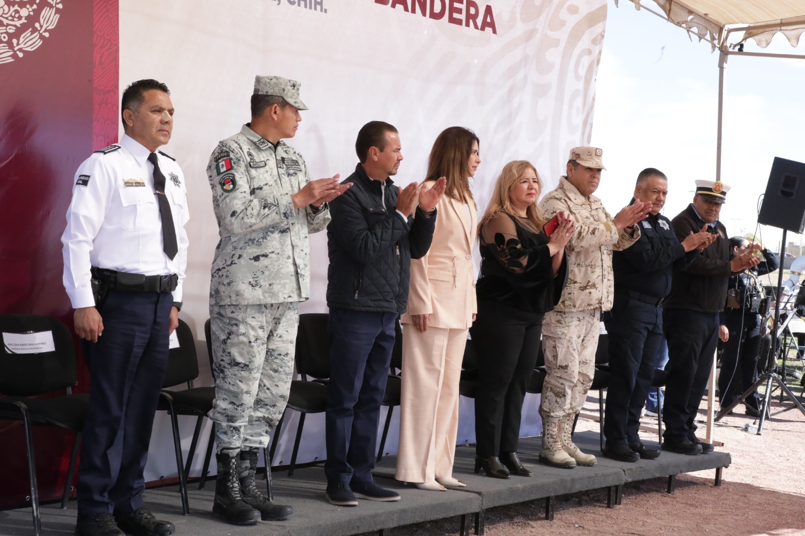 El evento protocolario tuvo como sede la megabandera en la zona de El Chamizal, donde se rindieron los honores a la enseña patria y se entonó el Himno Nacional.
