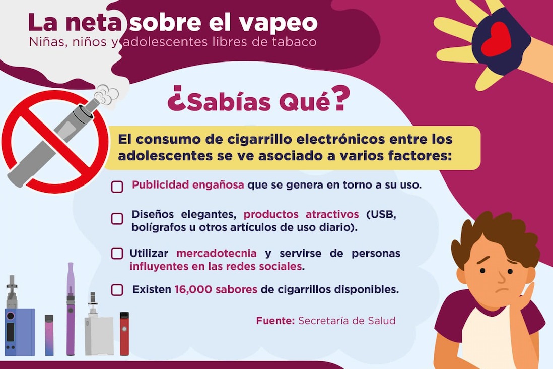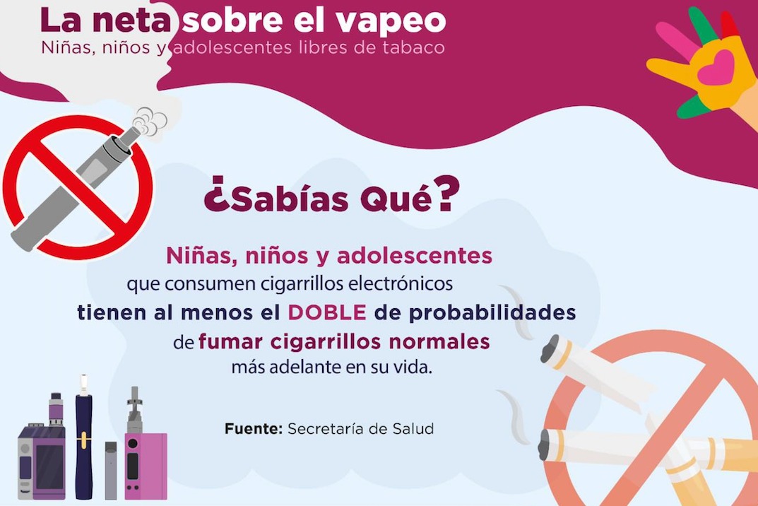 Indicó que el vapeador no es un simple dispositivo, por lo cual es importante conocer más sobre esta moda que se extienda cada vez más y que puede causar graves consecuencias en la salud de los menores, pues quienes los usan aumentan de dos a cuatro veces la probabilidad de fumar cigarrillos comunes, lo que incrementa la epidemia de tabaquismo.