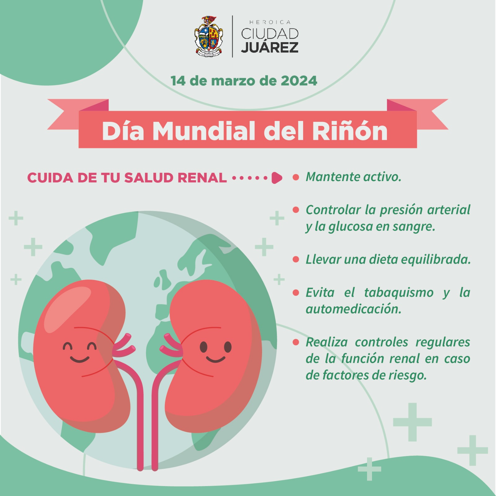 En el marco de las actividades por el Día Mundial del Riñón, que se conmemora este 14 de marzo, La Dirección de Salud del Municipio invita a la ciudadanía a cuidar de la salud renal.
