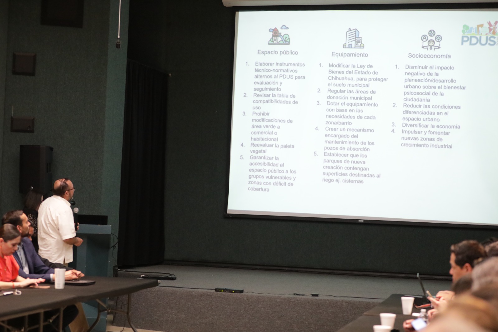 Durante la sesión se instó a los integrantes del Consejo a guiarse con instrumentos como el Plan de Desarrollo Urbano Sostenible de Juárez (PDUS), documento que fue actualizado para definir las pautas para el desarrollo de Ciudad Juárez con un enfoque de ordenamiento y sostenibilidad al año 2040.