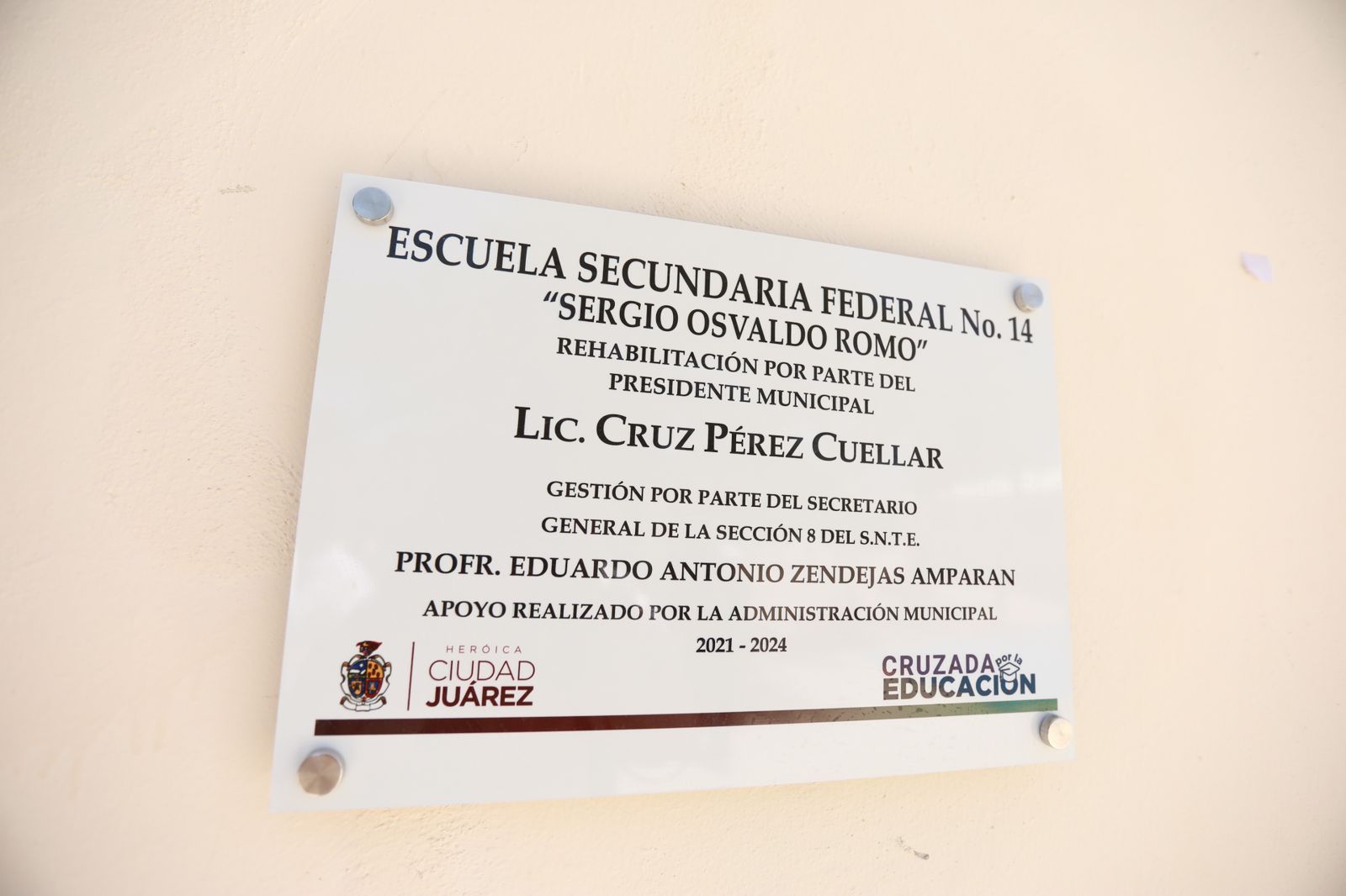 Con un cambio de imagen y otras obras que mejoraron el entorno, fue entregada la rehabilitación de la Escuela Secundaria Federal número 14 por parte del Presidente Municipal, Cruz Pérez Cuéllar.