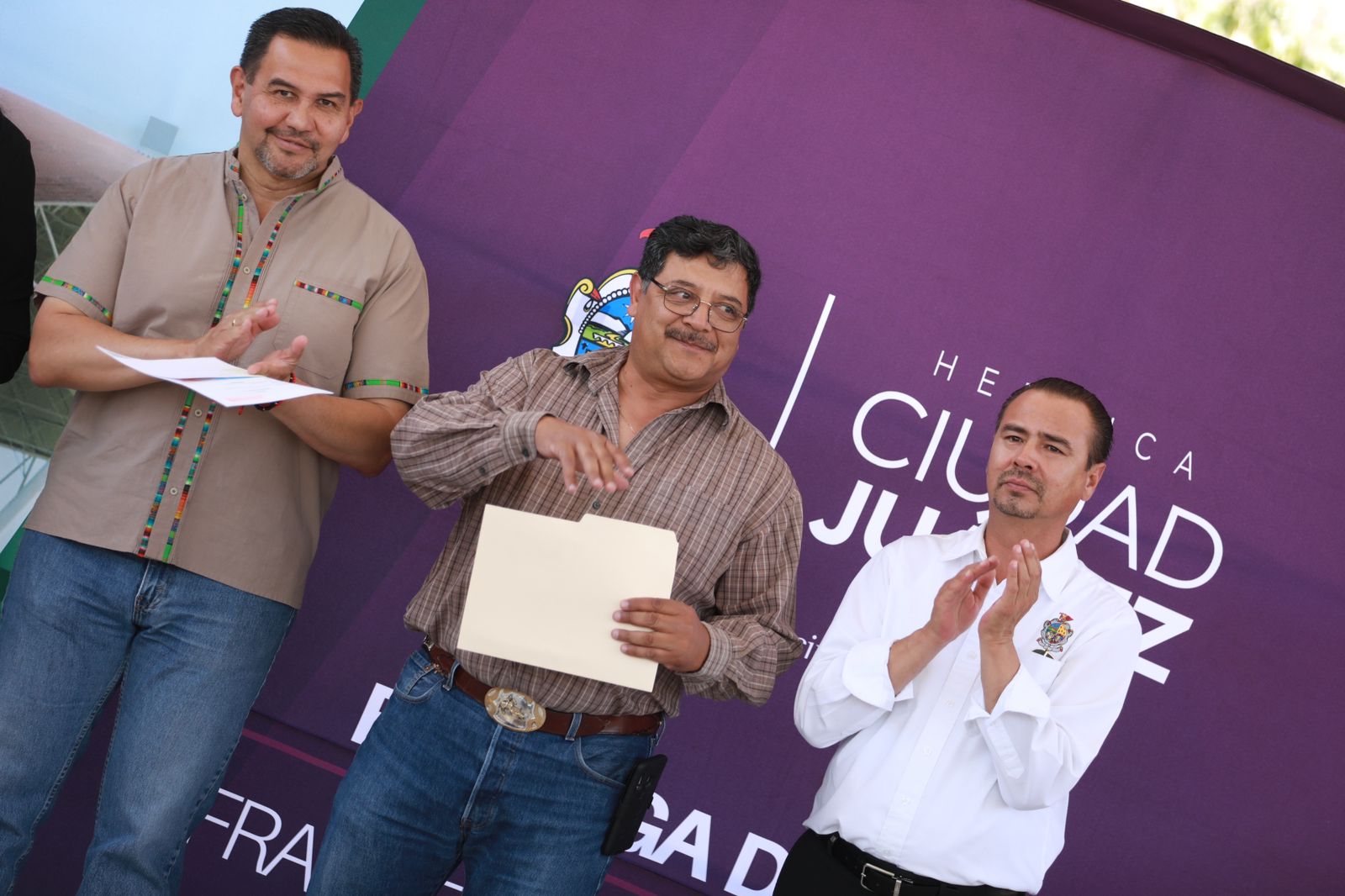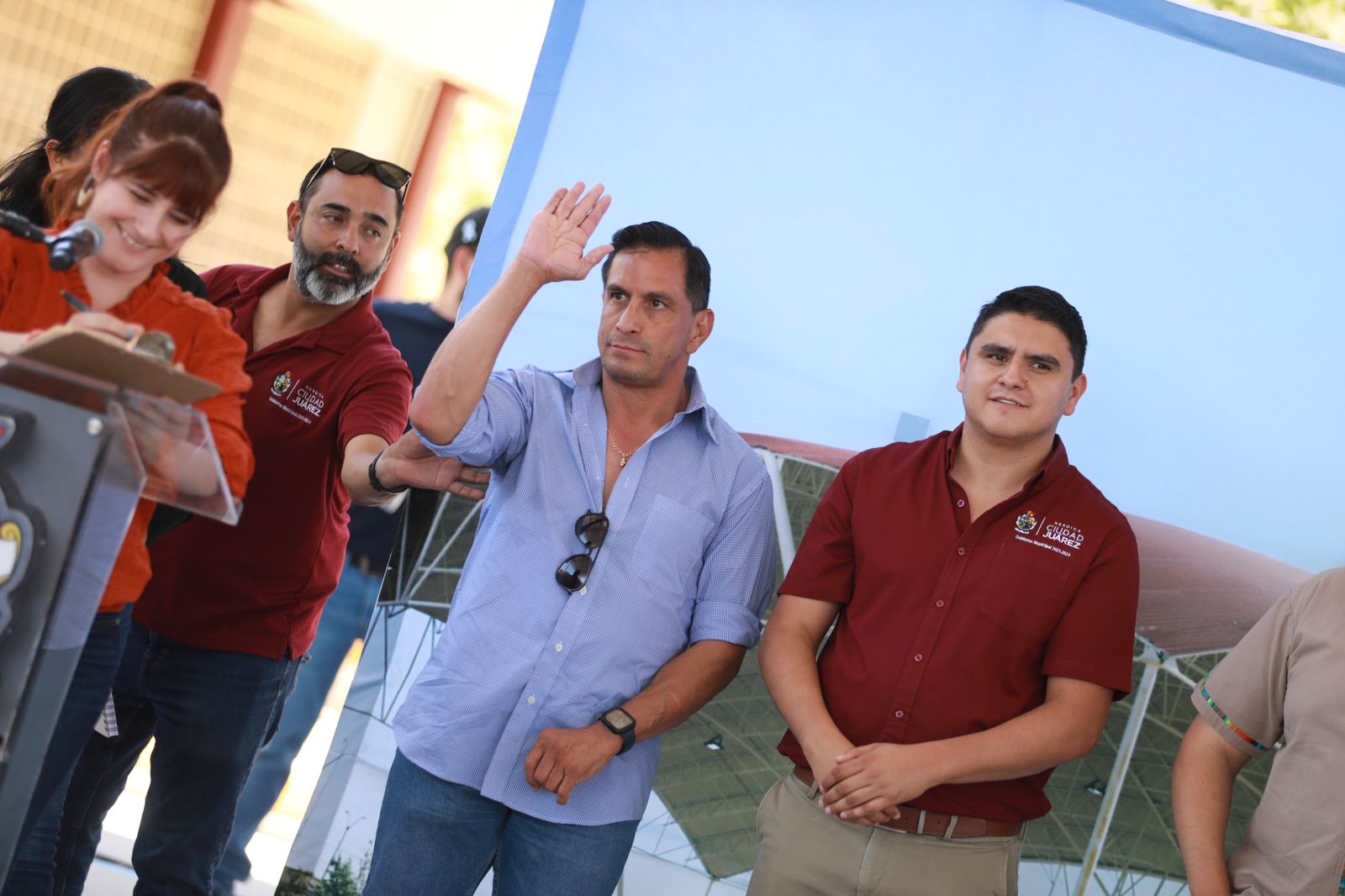 En la ceremonia de entrega estuvieron Maribel Zabala, representante de los padres de familia; Arturo Rivera, director de Servicios Públicos Municipales; el regidor Jorge Marcial Bueno y el coordinador de Infraestructura Educativa del Municipio, Ismael Rueda.