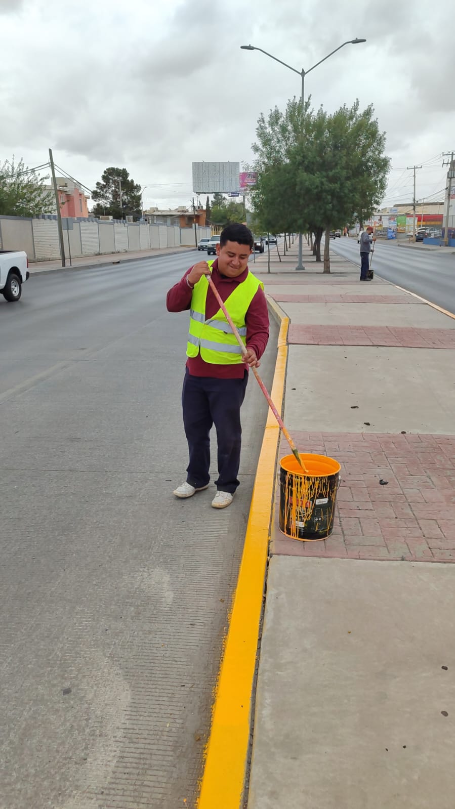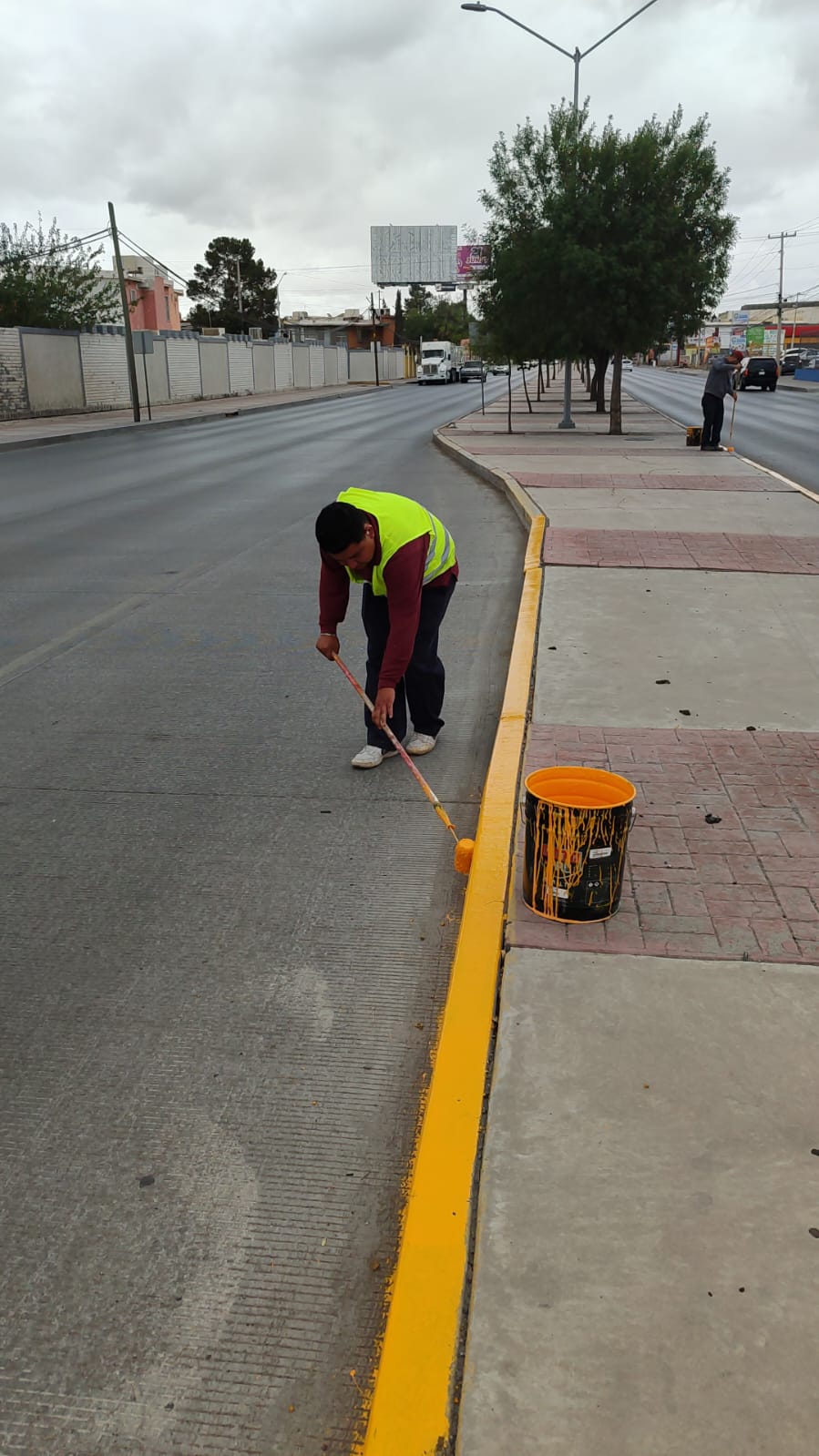 Como parte de las acciones para mejorar la imagen urbana en los distintos sectores de la ciudad, personal de la Dirección de Limpia continúa pintando los cordones de banquetas y del camellón central de la Paseo de la Victoria, en el tramo del bulevar Manuel Gómez Morín a la avenida Ejército Nacional, dio a conocer Gibran Solís Kanahan, titular de la dependencia.