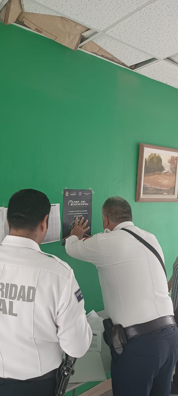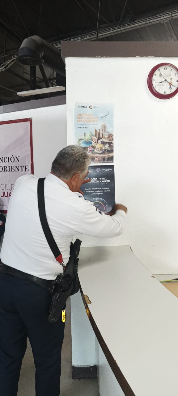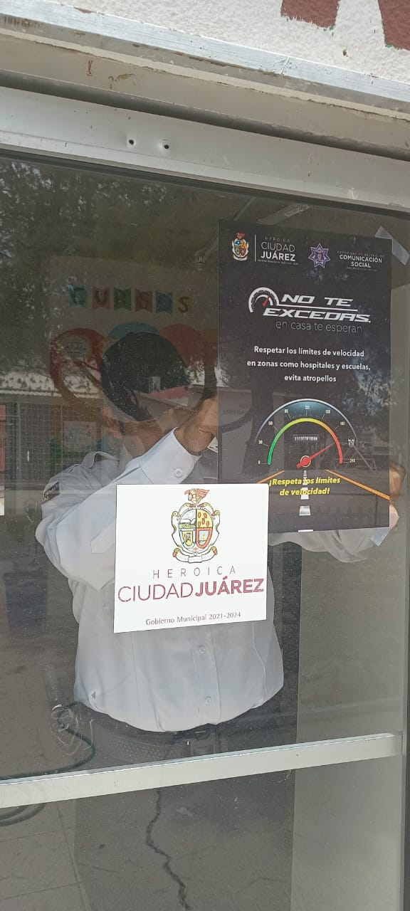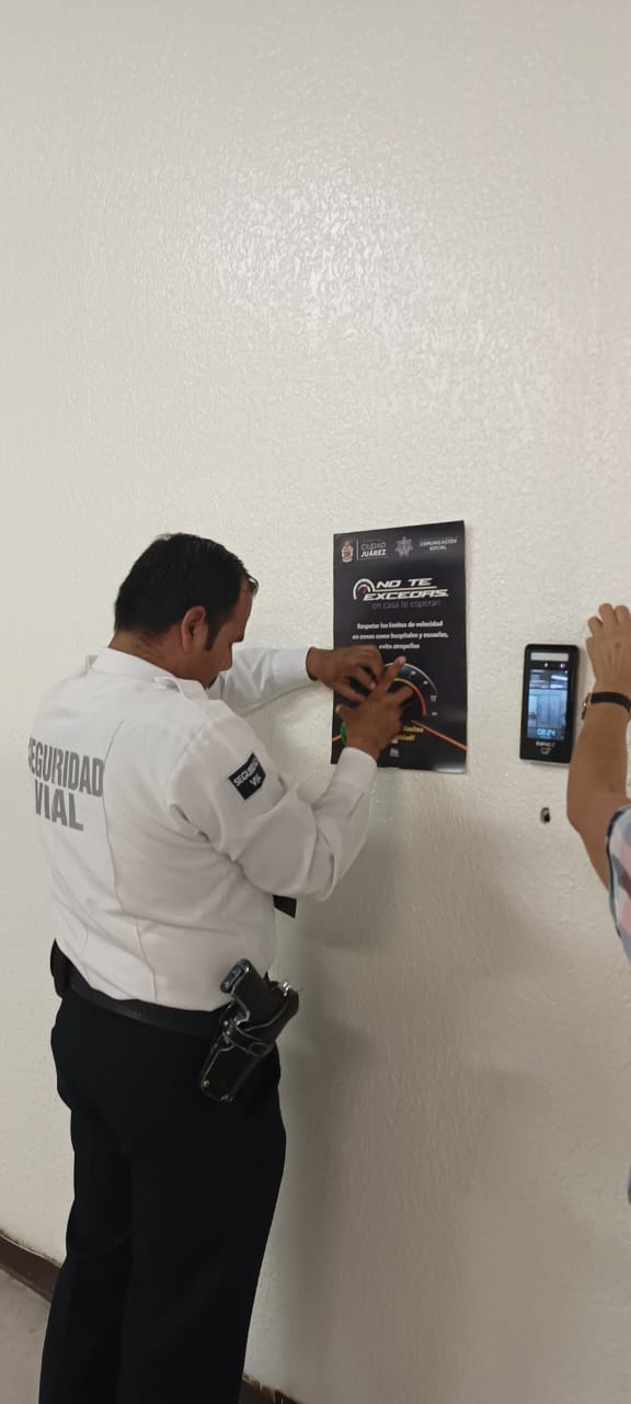 Este jueves elementos destacamentados en el área de Educación Vial visitaron algunas dependencias municipales para pegar propaganda y charlar con la comunidad sobre los riesgos que existen cuando se maneja a exceso de velocidad a bordo de un automóvil.