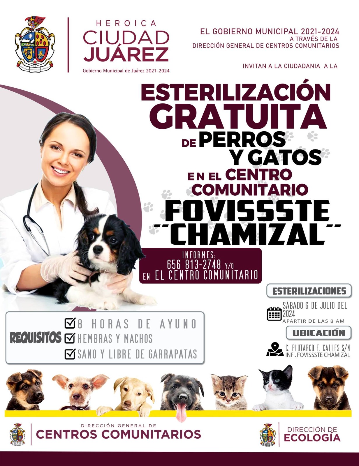 Jesús Manuel García Reyes, titular de Centros Comunitarios, indicó que las cirugías a perros y gatos se desarrollarán el 6 de julio en el comunitario Fovissste Chamizal, ubicado sobre la avenida Plutarco Elías Calles.