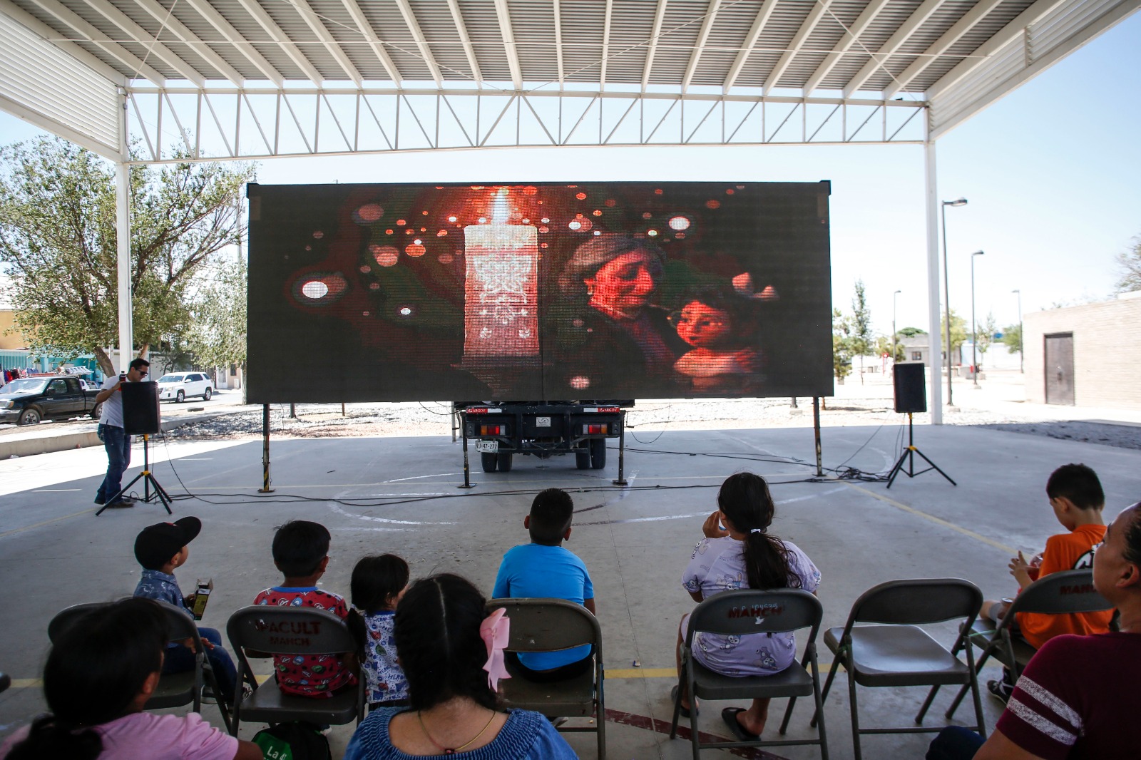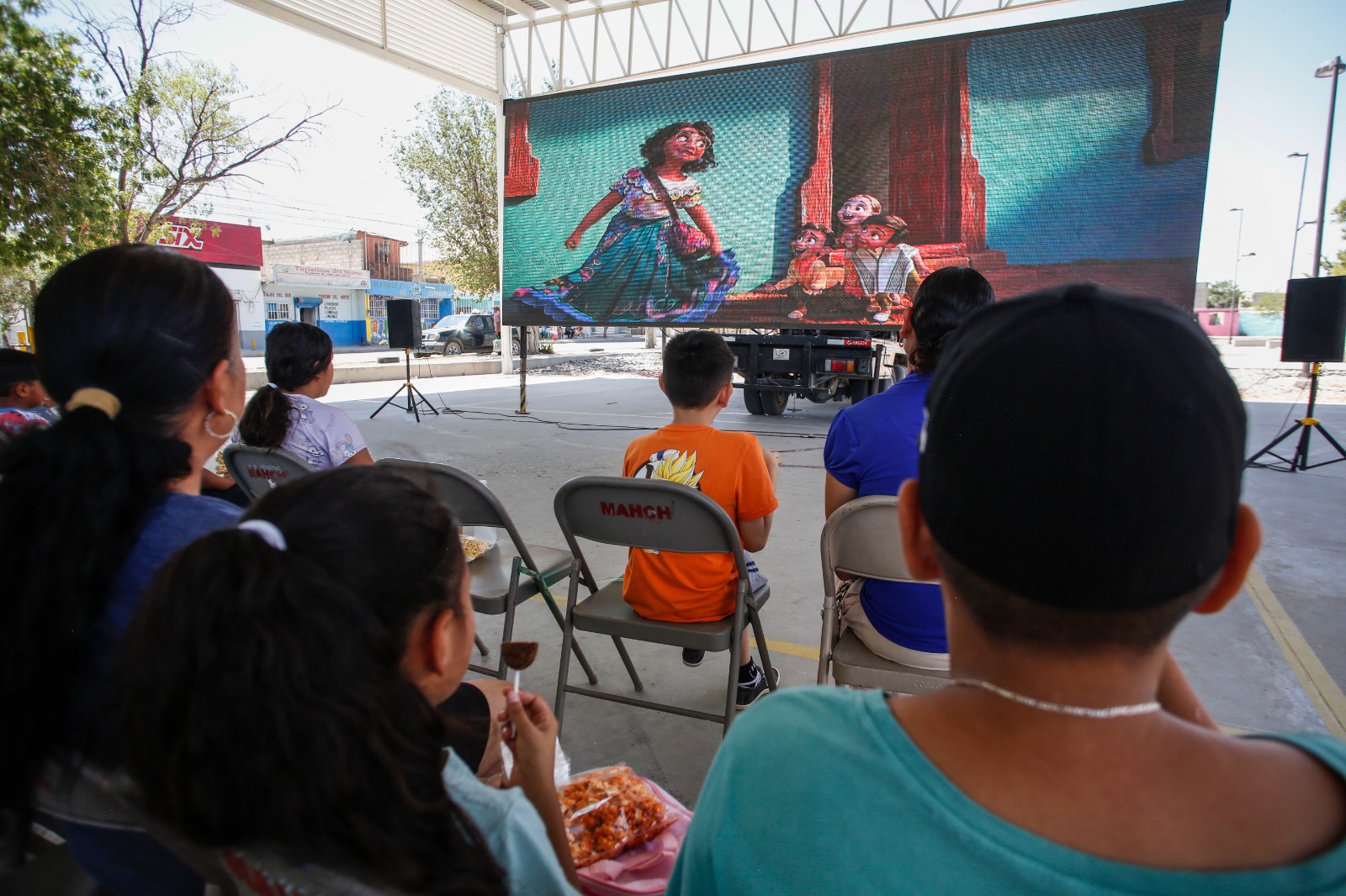 El programa "El Cine en tu Colonia", organizado por el Instituto para la Cultura del Municipio de Juárez (IPACULT), llevó diversión y alegría a varias familias que pudieron disfrutar de la película "Encanto", proyectada recientemente en el Centro Comunitario Zaragoza.