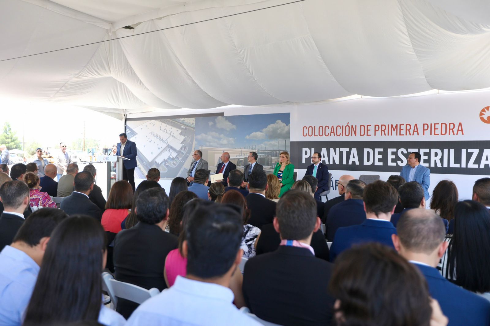 Por su parte, la gobernadora María Eugenia Campos Galván, quien también fue invitada a la colocación de la primera piedra, señaló que será una planta única a nivel mundial por su grado de automatización y referente global en materia de esterilización para equipo médico.