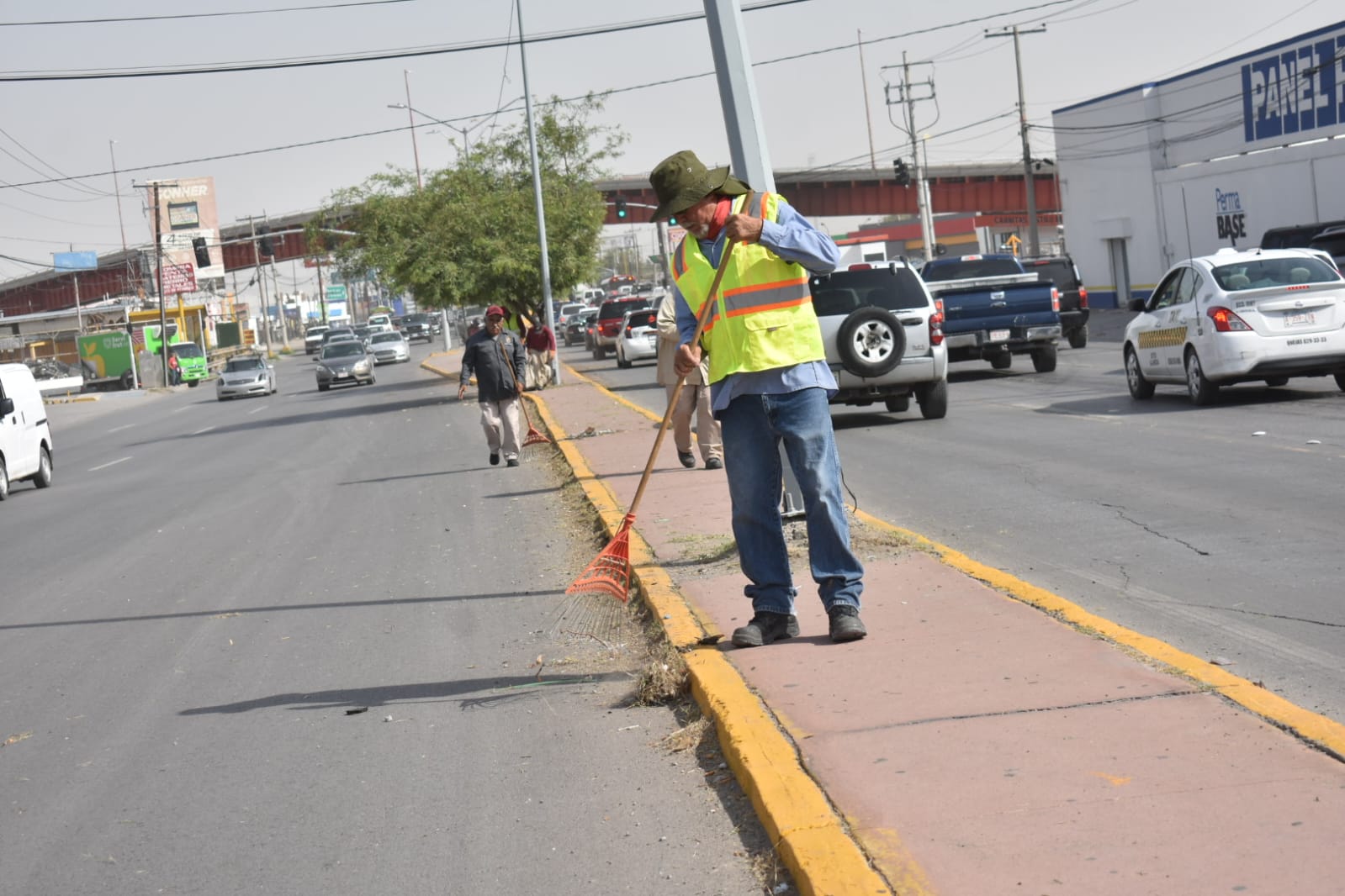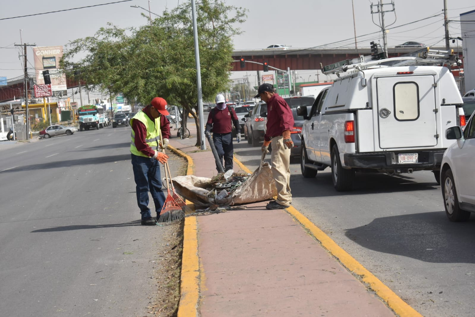 Como parte del operativo permanente de limpieza en camellones de la ciudad, trabajadores de la Dirección de Parques y Jardines le dieron mantenimiento al camellón central que se ubica sobre el bulevar Óscar Flores.