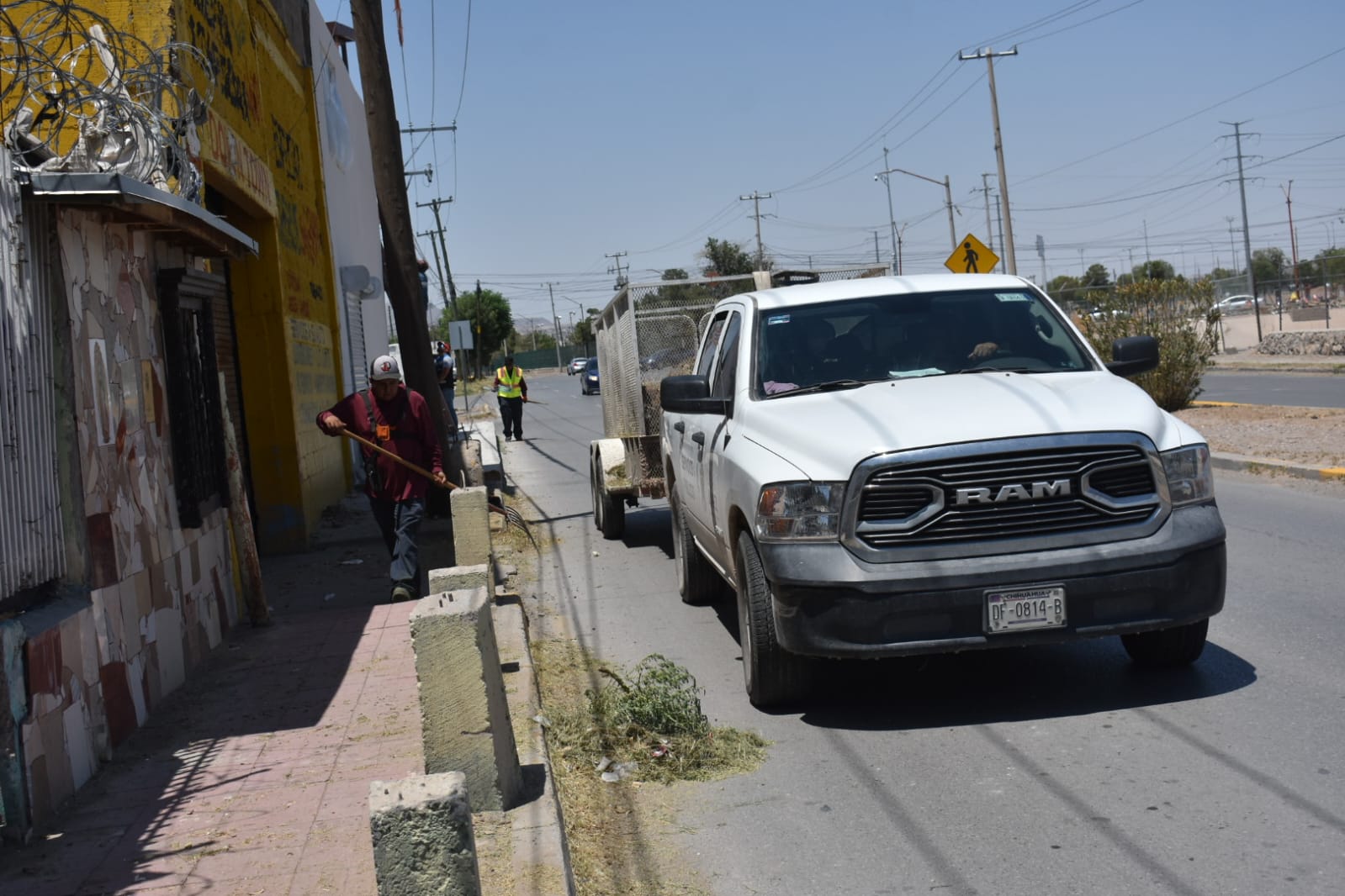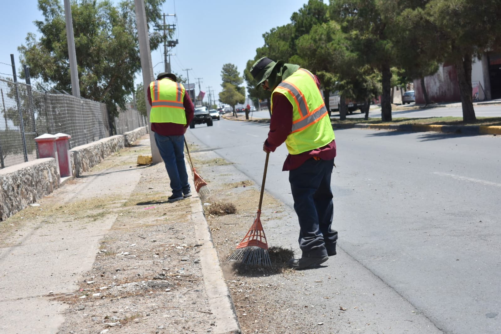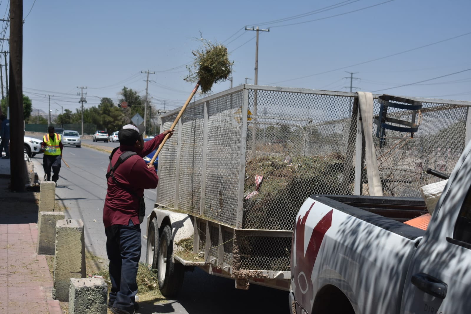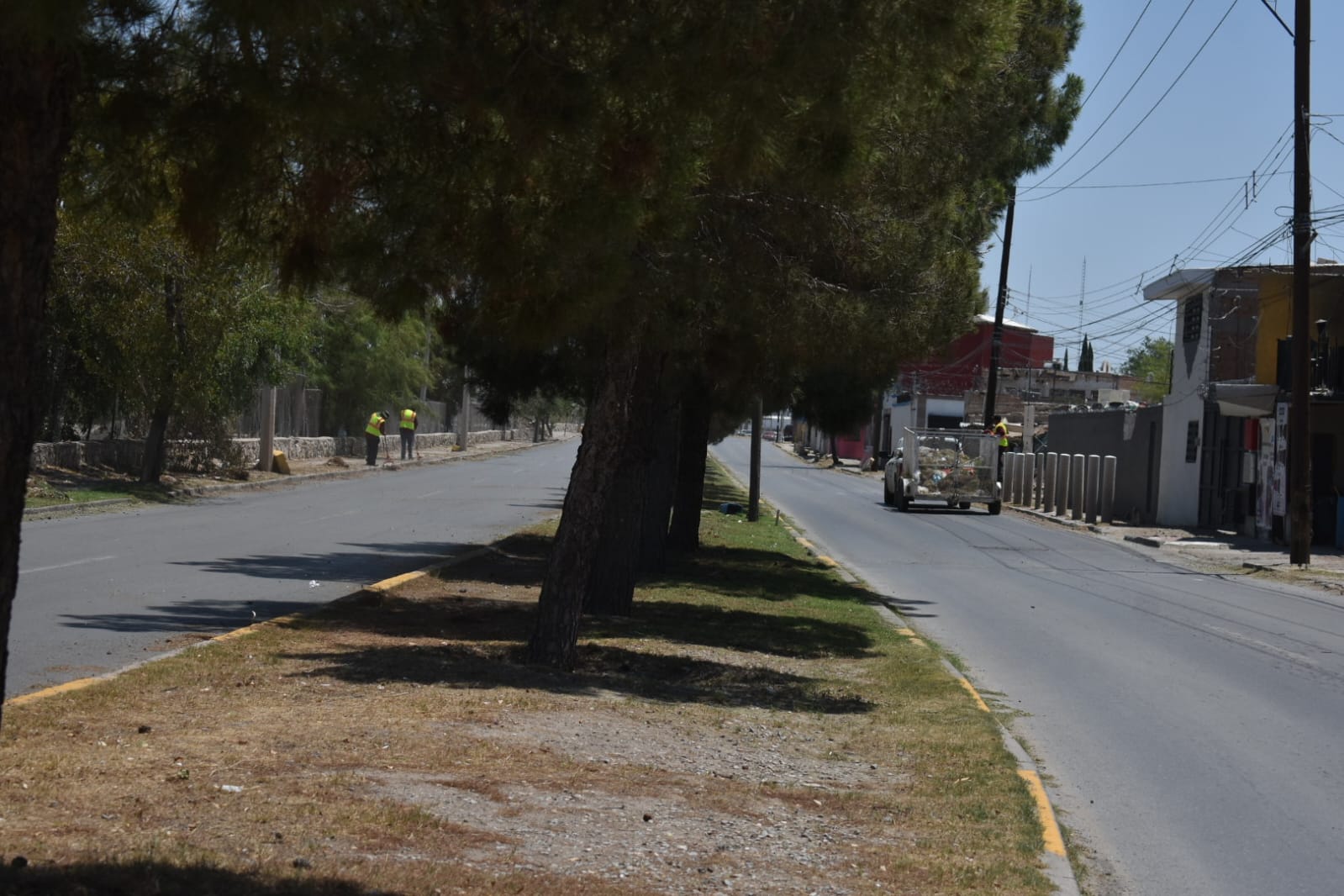 Como parte del operativo permanente de limpieza en la ciudad, la Dirección de Parques y Jardines dio mantenimiento al camellón central que se ubica sobre la calle David Herrera Jordán.