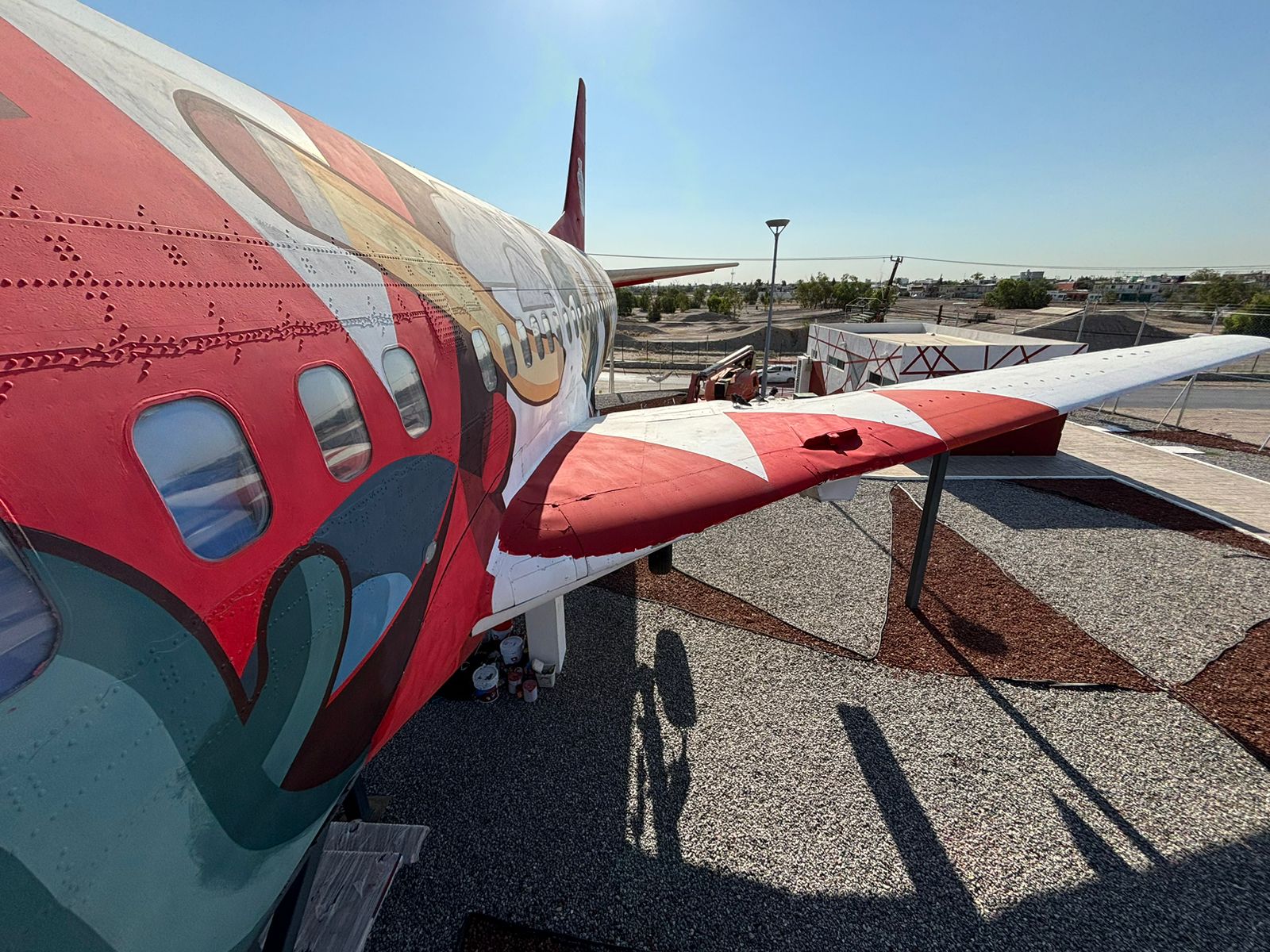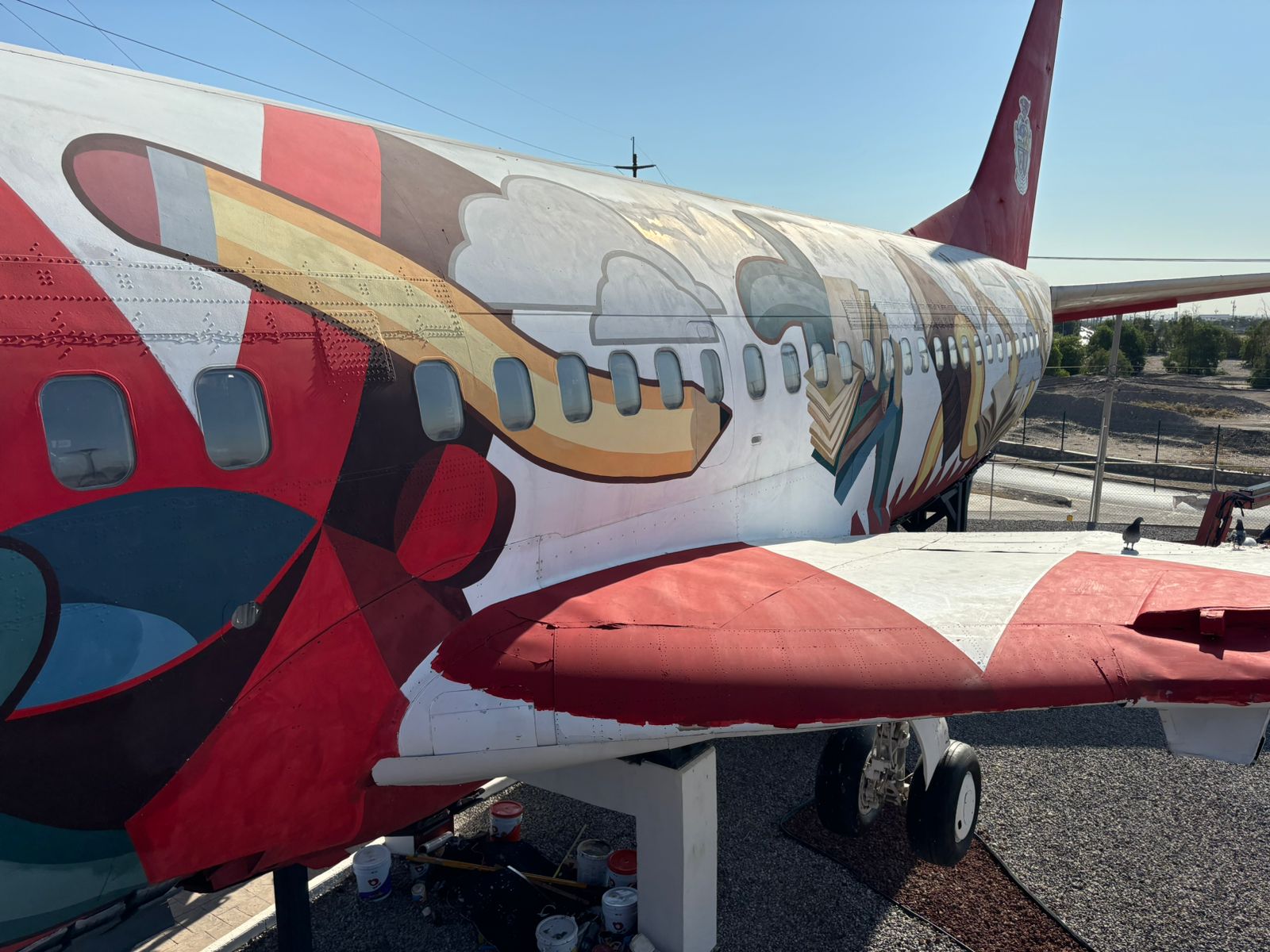 Estas mejoras se hacen luego de que esta aeronave, un Boeing 737 serie 300, ha cambiado en su exterior al pintarlo con un mural creado por un estudiante juarense, pero que es plasmado por el muralista Arturo Damasco.