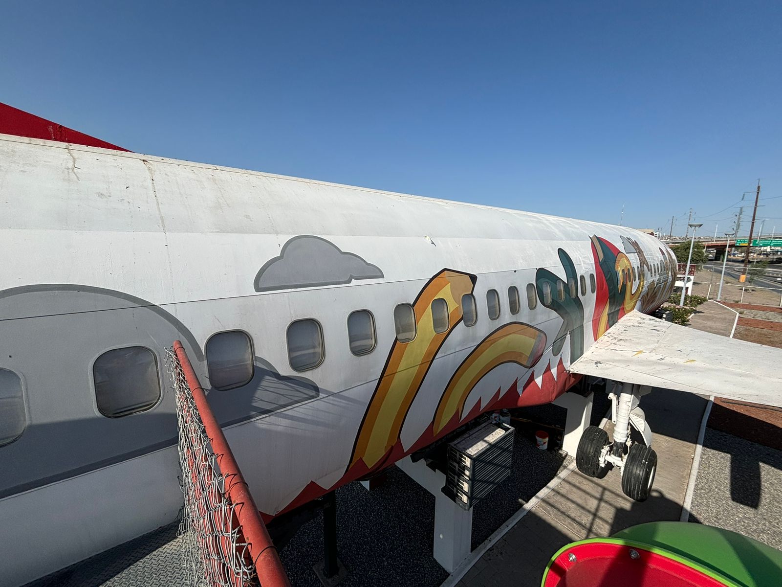 Gónzalez García dijo que se trabajó en la colocación de mesas, algunos juegos infantiles como columpios, resbaladilla, sube y baja, además de grava decorativa en la parte inferior de la estructura del Boeing, además de que se labora en los detalles de los murales en el avión y la explanada.