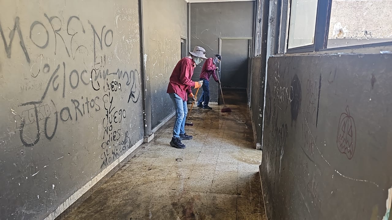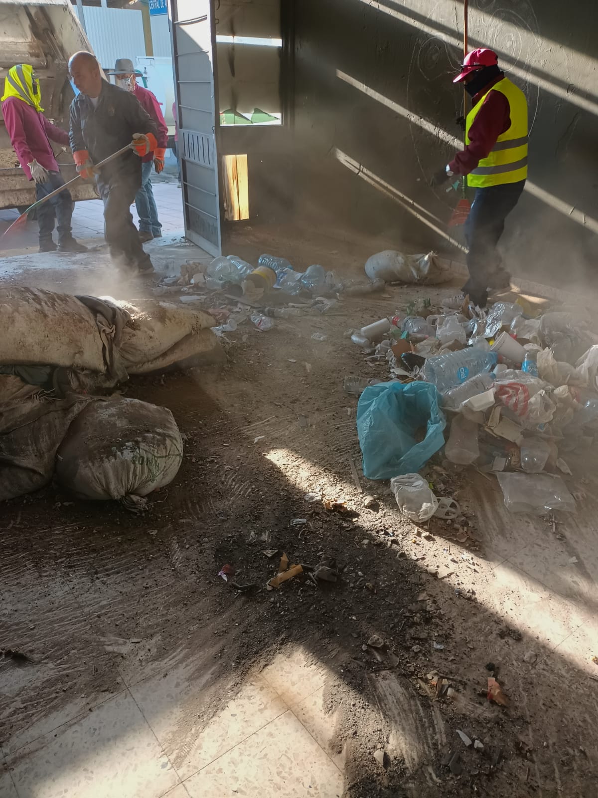 Solís dijo que trabajaron en el retiro de escombro, basura, ropa y tiliches del lugar, además personal de Parques y Jardines reforzó las actividades con lavado a presión de los pisos y paredes apoyándose en pipas con agua tratada.