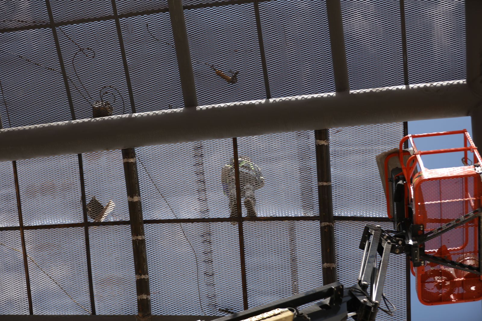 Daniel González García, director general de la dependencia, comentó que se tiene un avance cercano al 90%, trabajando actualmente en la colocación de maya en la estructura más grande, jardineras, forestación y la instalación de grava decorativa, una obra que se efectúa con una inversión de 50,597,963.88 pesos.