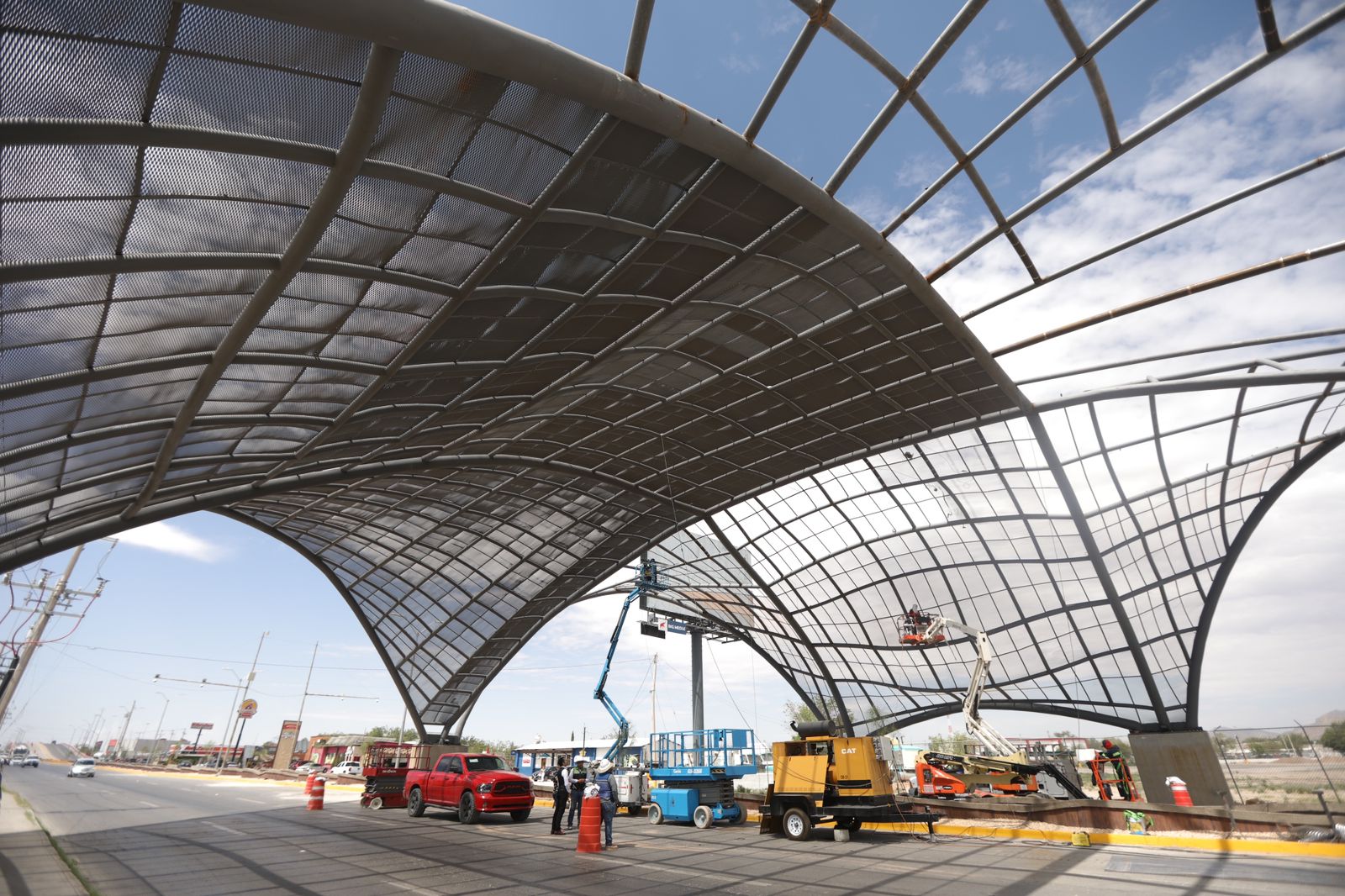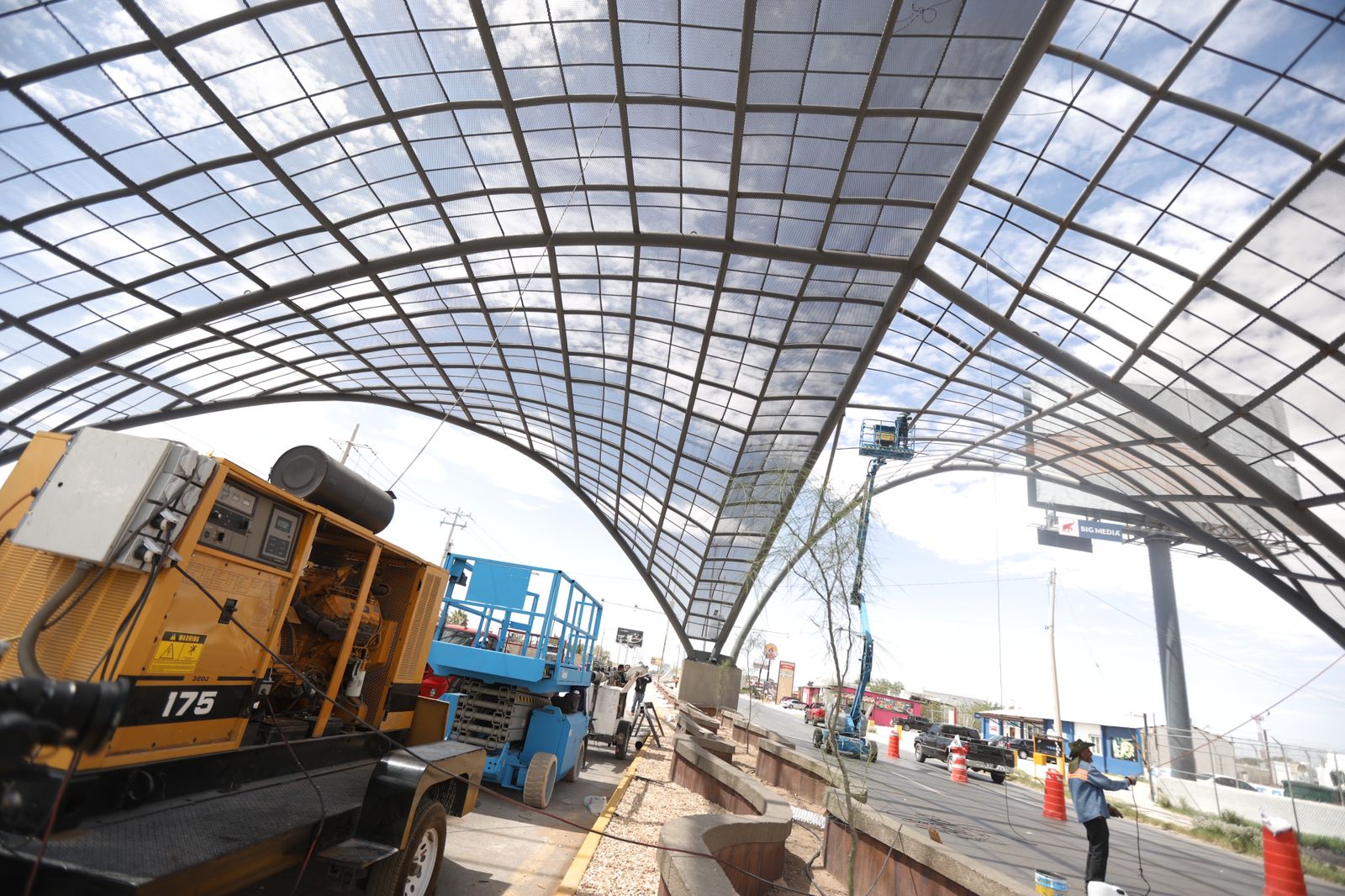 “Ahorita lo más fuerte que traemos es la instalación eléctrica, ya se colocaron unas lámparas que van de bajo de la sombra y ya lo último que para esto es la pintura color cobre, que en su momento se va a solear y tomará un color, la tenemos programada ya para terminar a finales de agosto”, mencionó el funcionario.