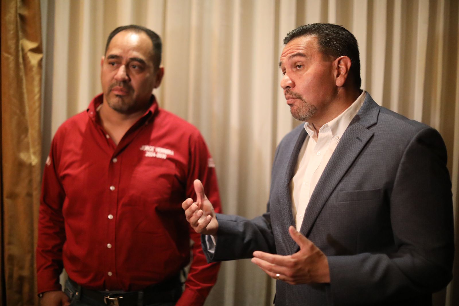 El Presidente Municipal, Cruz Pérez Cuéllar recibió la visita de Jorge Herrera Navarro, quien fue elegido recientemente como secretario general de la Sección VIII del Sindicato Nacional de Trabajadores del Seguro Social en Chihuahua.