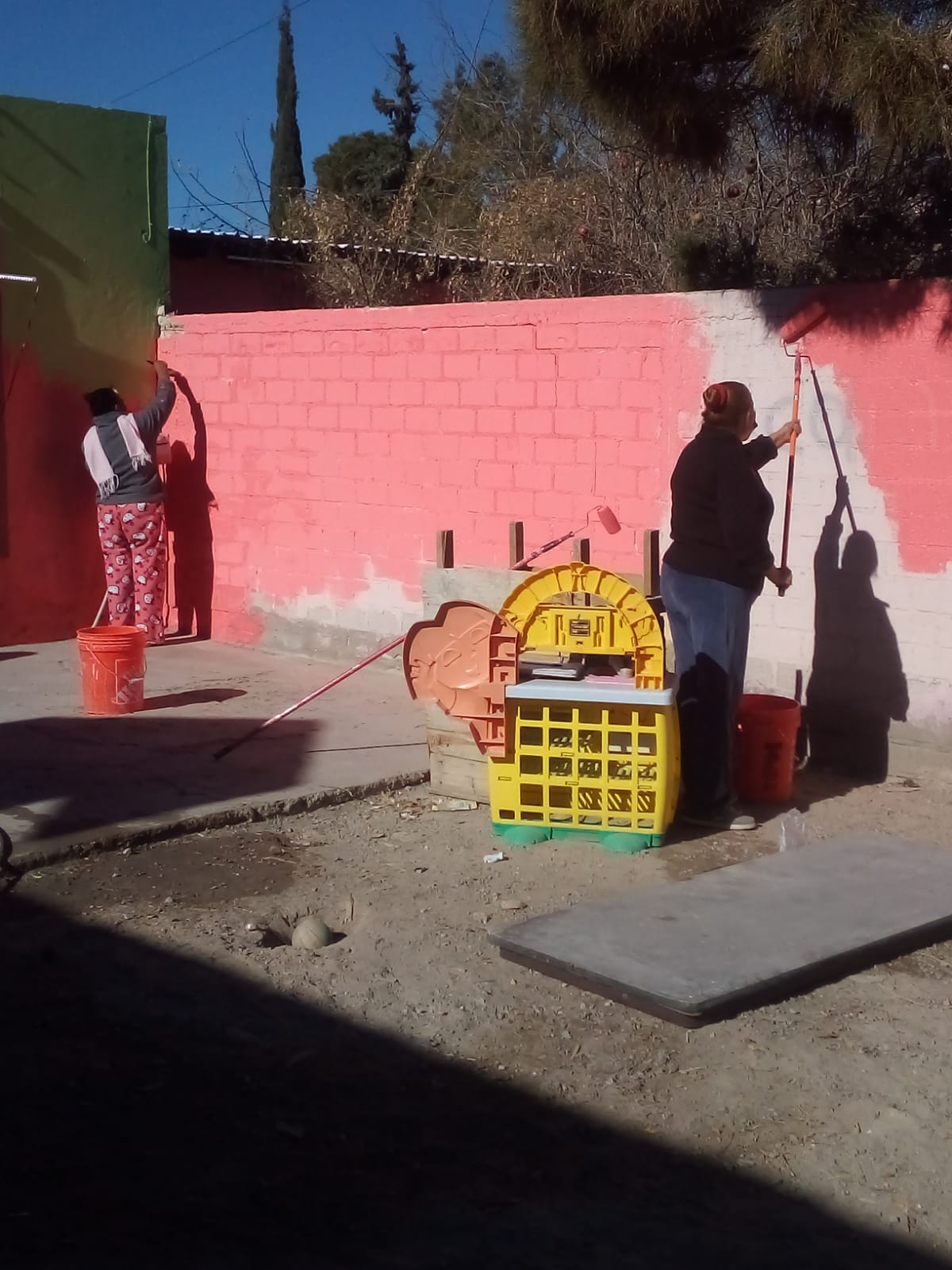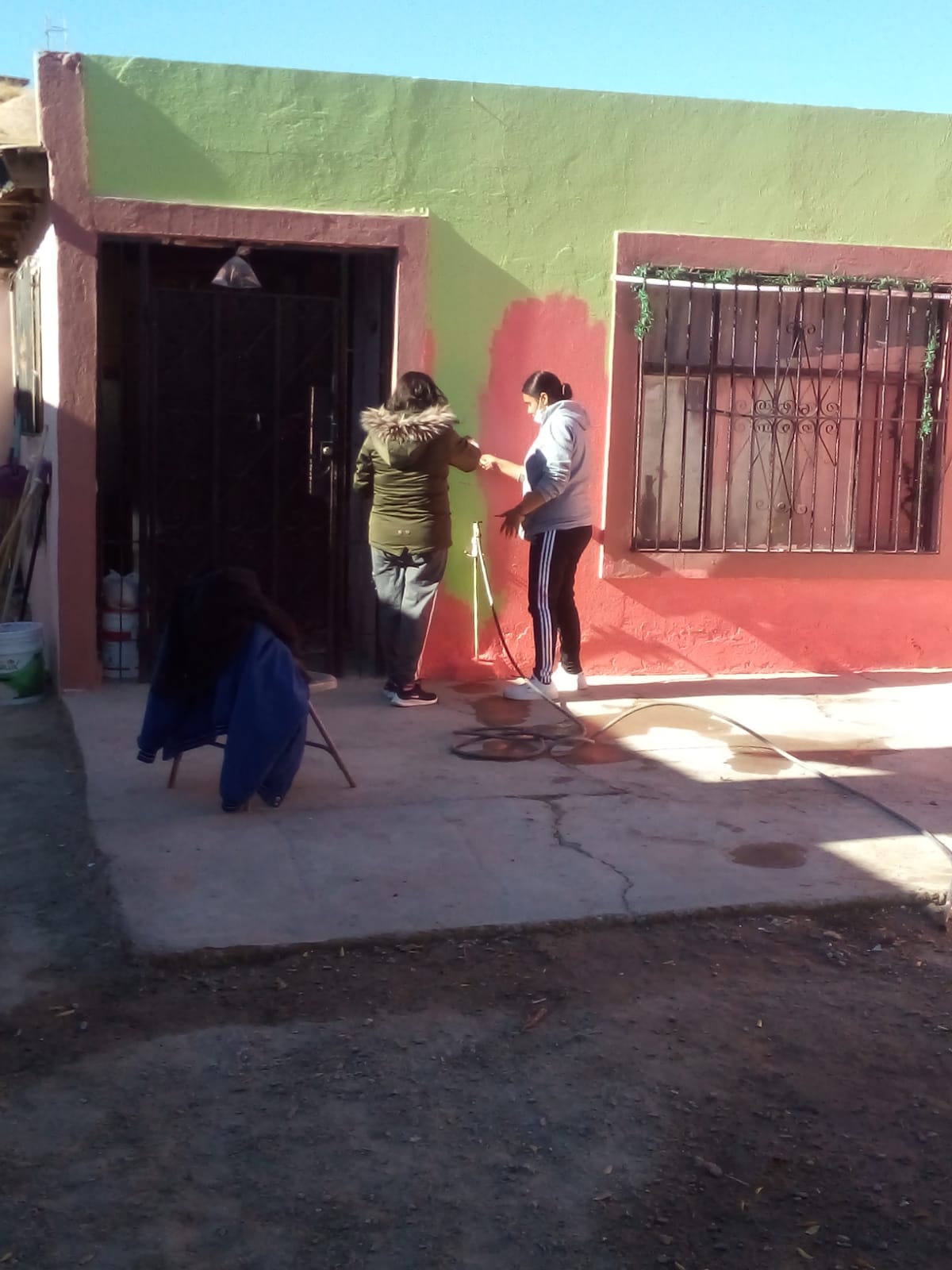 Con la finalidad de impactar positivamente y mejorar la imagen en las colonias de la periferia, personal de la Dirección de Desarrollo Social y estudiantes de la Universidad Autónoma de Ciudad Juárez (UACJ), continúan pintando viviendas en la colonia Felipe Ángeles y en otras del norponiente de la ciudad.