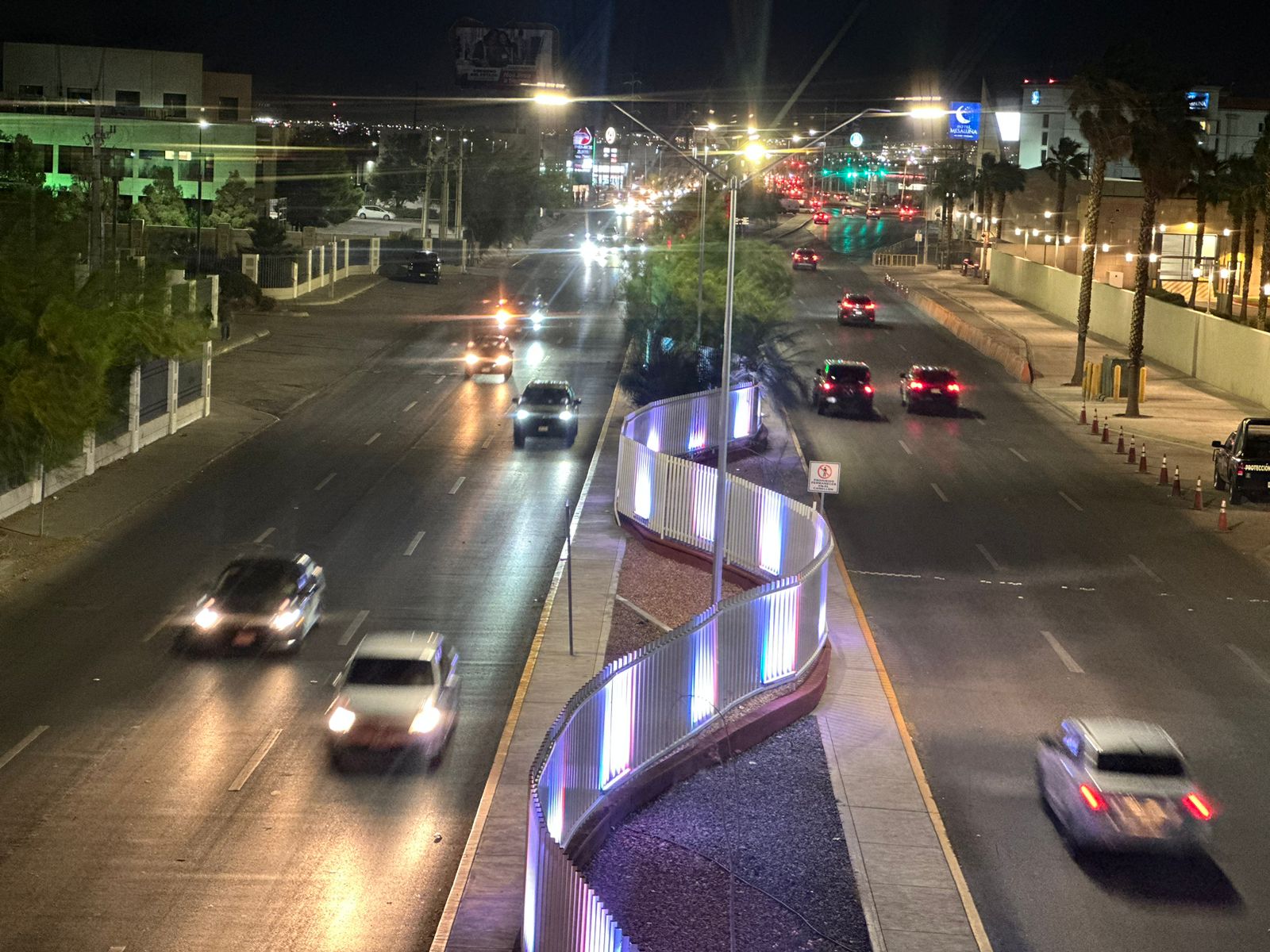 Daniel González García, director general de la dependencia, dio a conocer que ayer se hicieron pruebas nocturnas para verificar la sincronización de 100 regletas iluminativas que están sobre el barandal lineal, en el cual se reflejarán distintos colores para darle una mejor imagen por las noches al camellón.