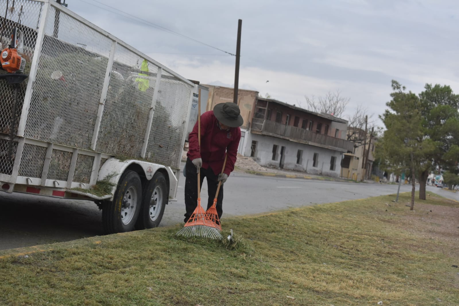 Dirección de Parques y Jardines limpia camellón de la calle David Herrera Jordán