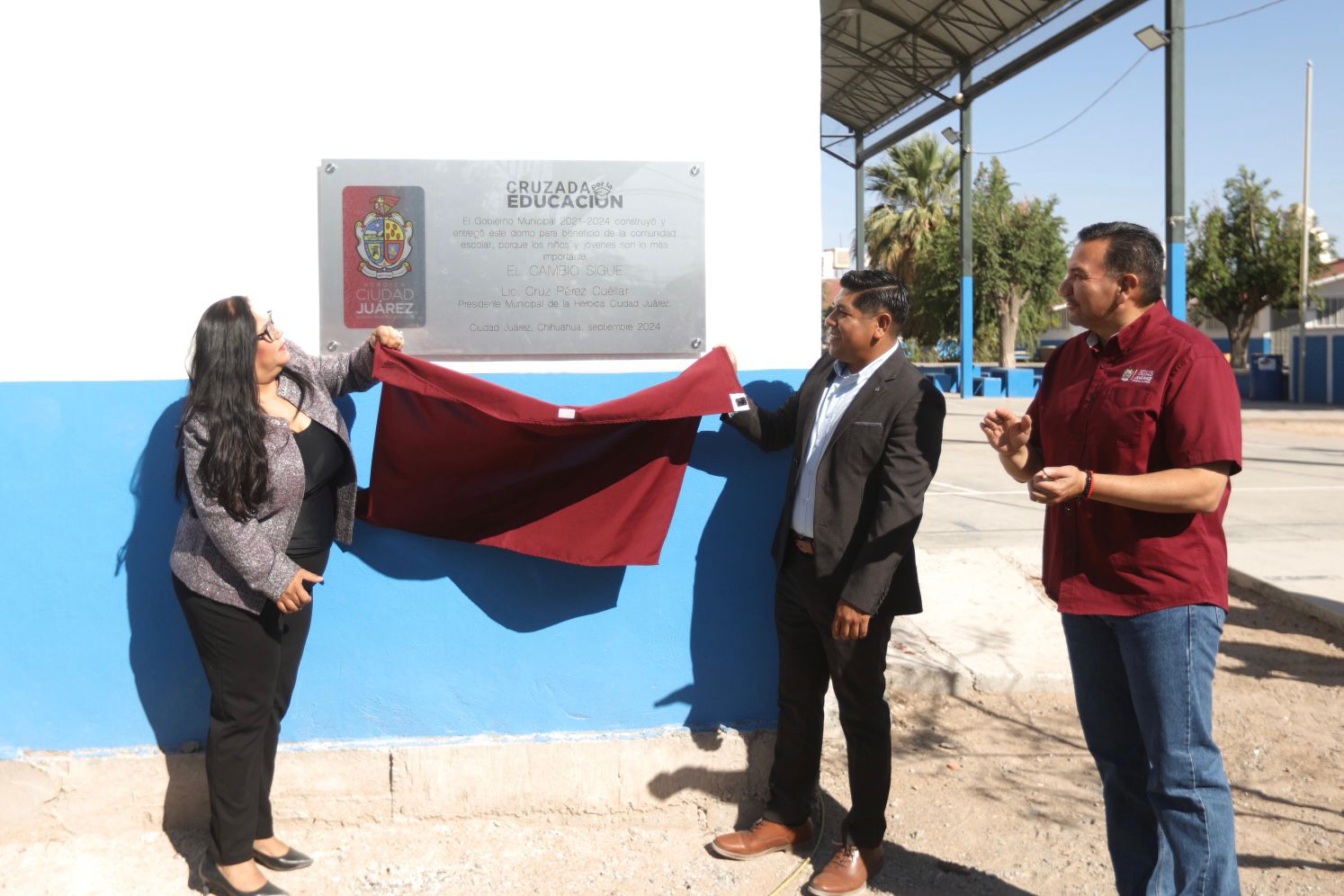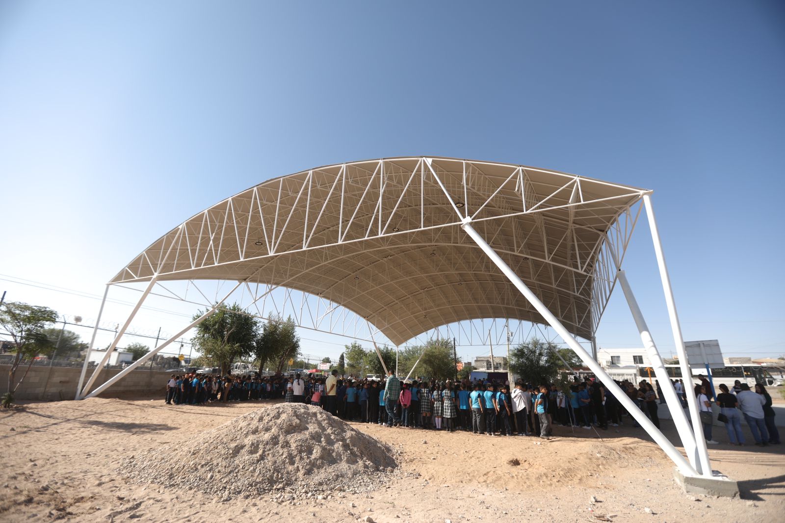 "Esta estructura metálica no es solo un domo, es sombra, protección ante las inclemencias del clima, un refugio que resguarda la salud e integridad de nuestros niños", expresó el maestro.