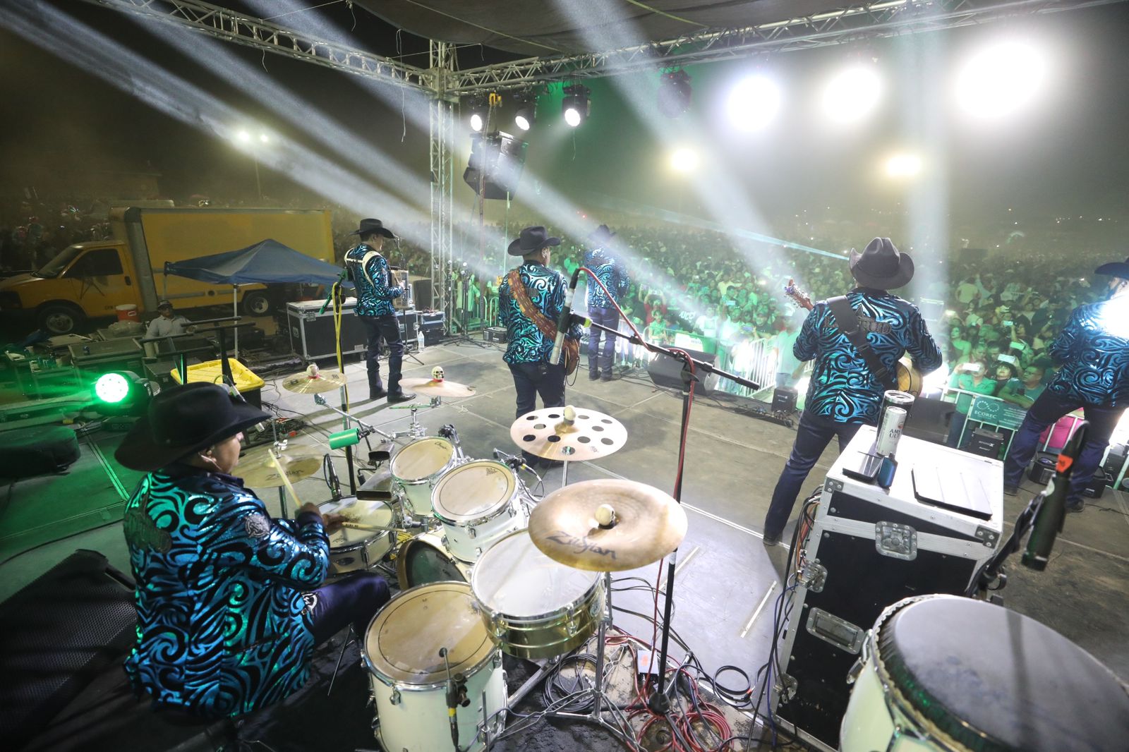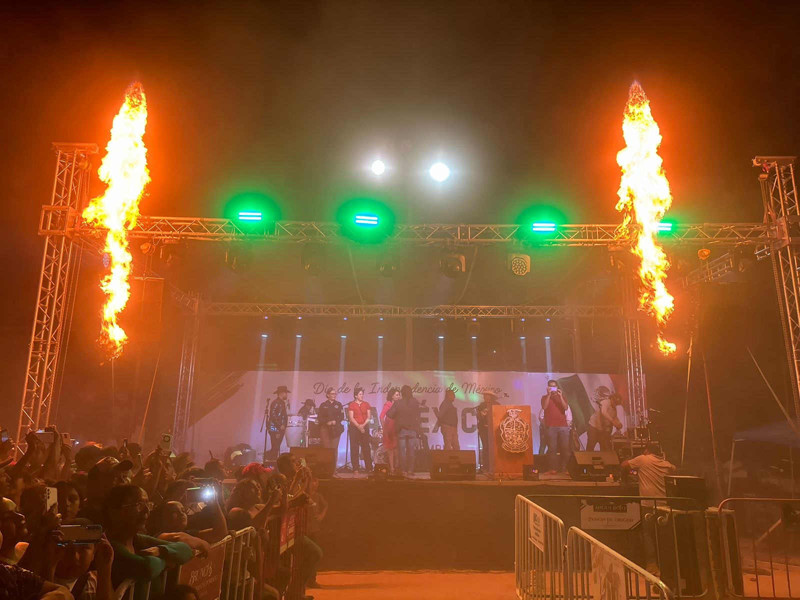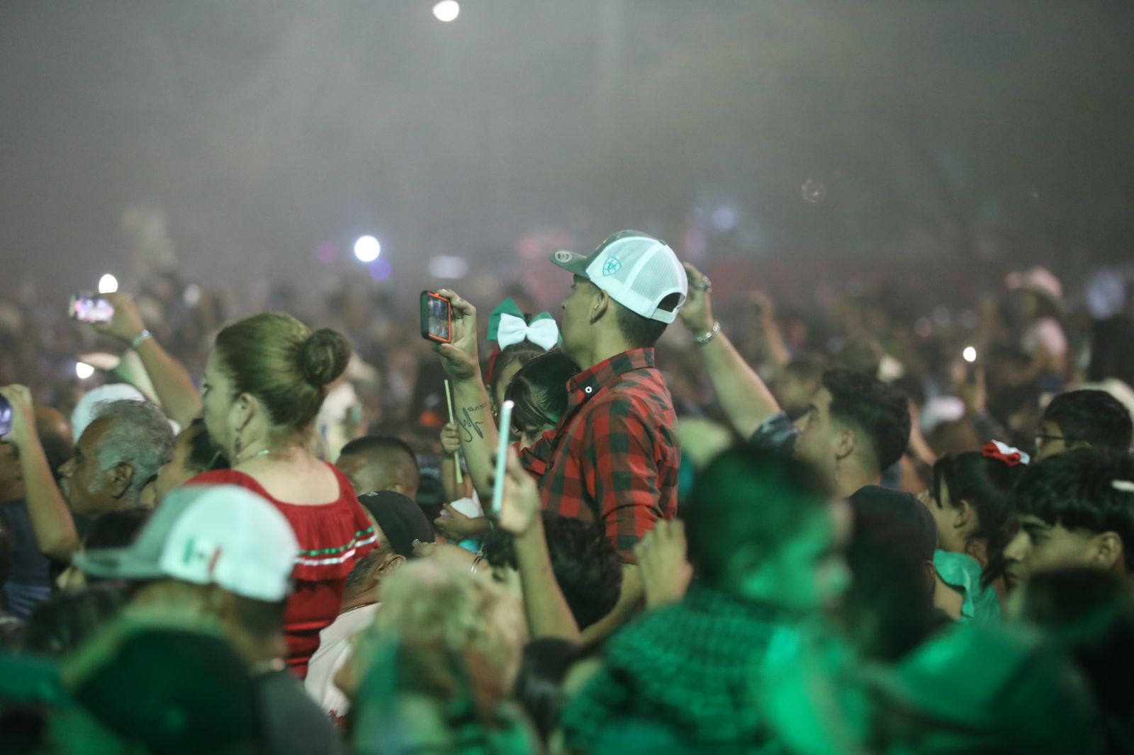 Tras el tradicional Grito, un despliegue de fuegos artificiales iluminó el cielo, seguido por la música del grupo norteño Latitud Norte, que puso a bailar a los presentes, marcando una noche inolvidable.