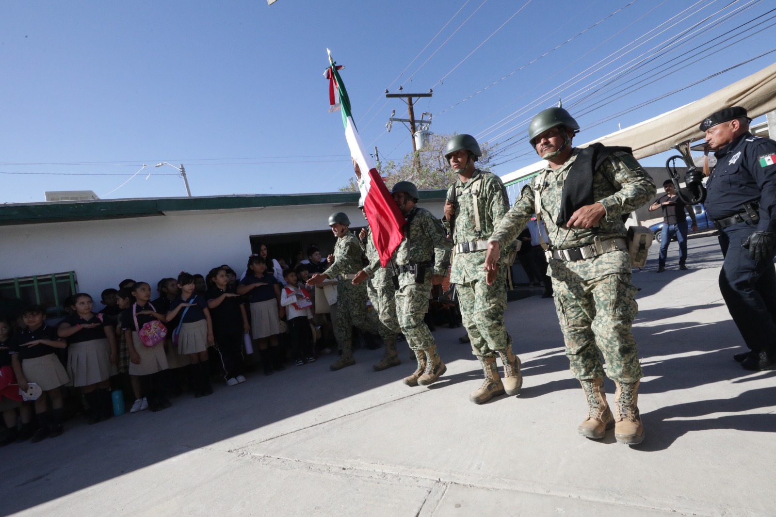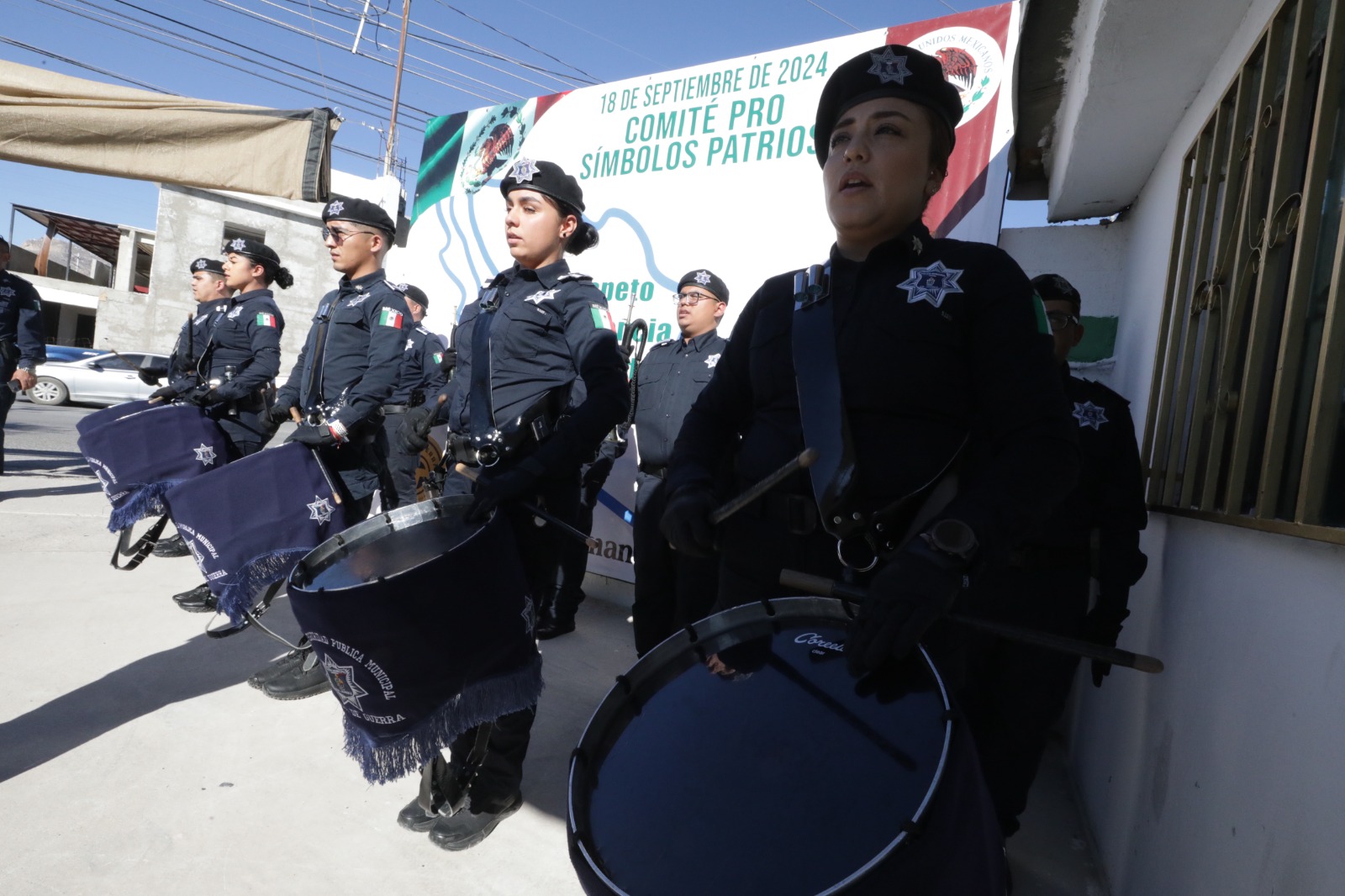 La escolta estuvo a cargo del Noveno Regimiento de Caballería Motorizado y la banda de guerra de la Secretaría de Seguridad Pública Municipal.