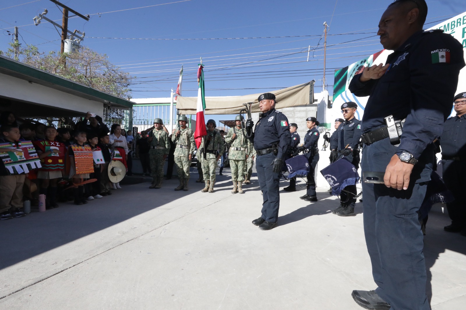 Acompañados de los estudiantes de las primarias Libertad y Cuitláhuac, se ofreció una remembranza sobre Josefa Ortiz de Domínguez.