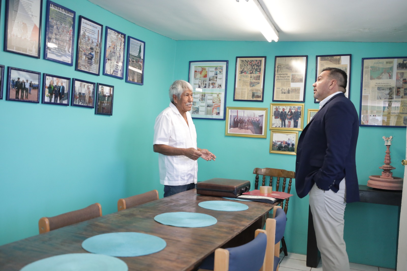 Previo a los honores a la bandera, el alcalde fue invitado a conocer el salón “El recinto de los héroes”, donde García Miranda mostró imágenes de los diversos eventos que ha llevado a cabo en el exterior de su casa.