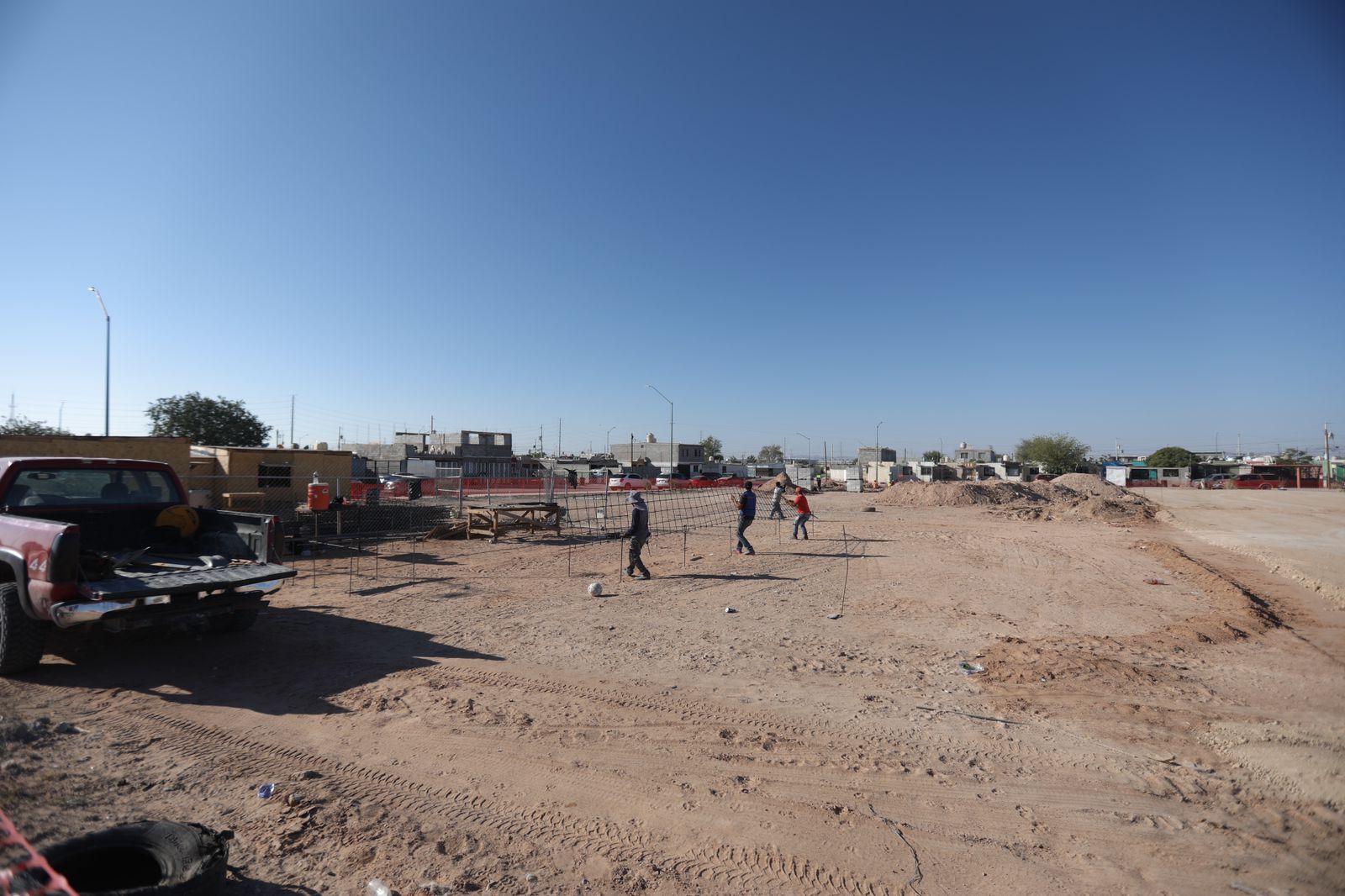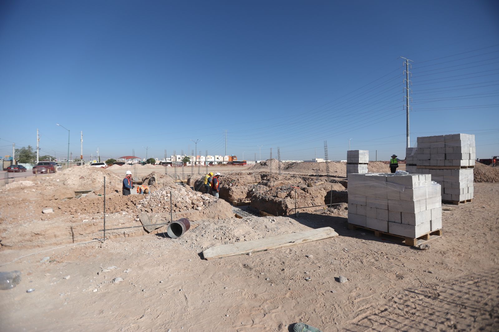 El funcionario detalló que se trabaja de manera inicial en terracerías, cimentaciones, así como en plataformas para estacionamiento, área de cancha y domo en uno de los espacios, además de excavaciones y la validación de redes.