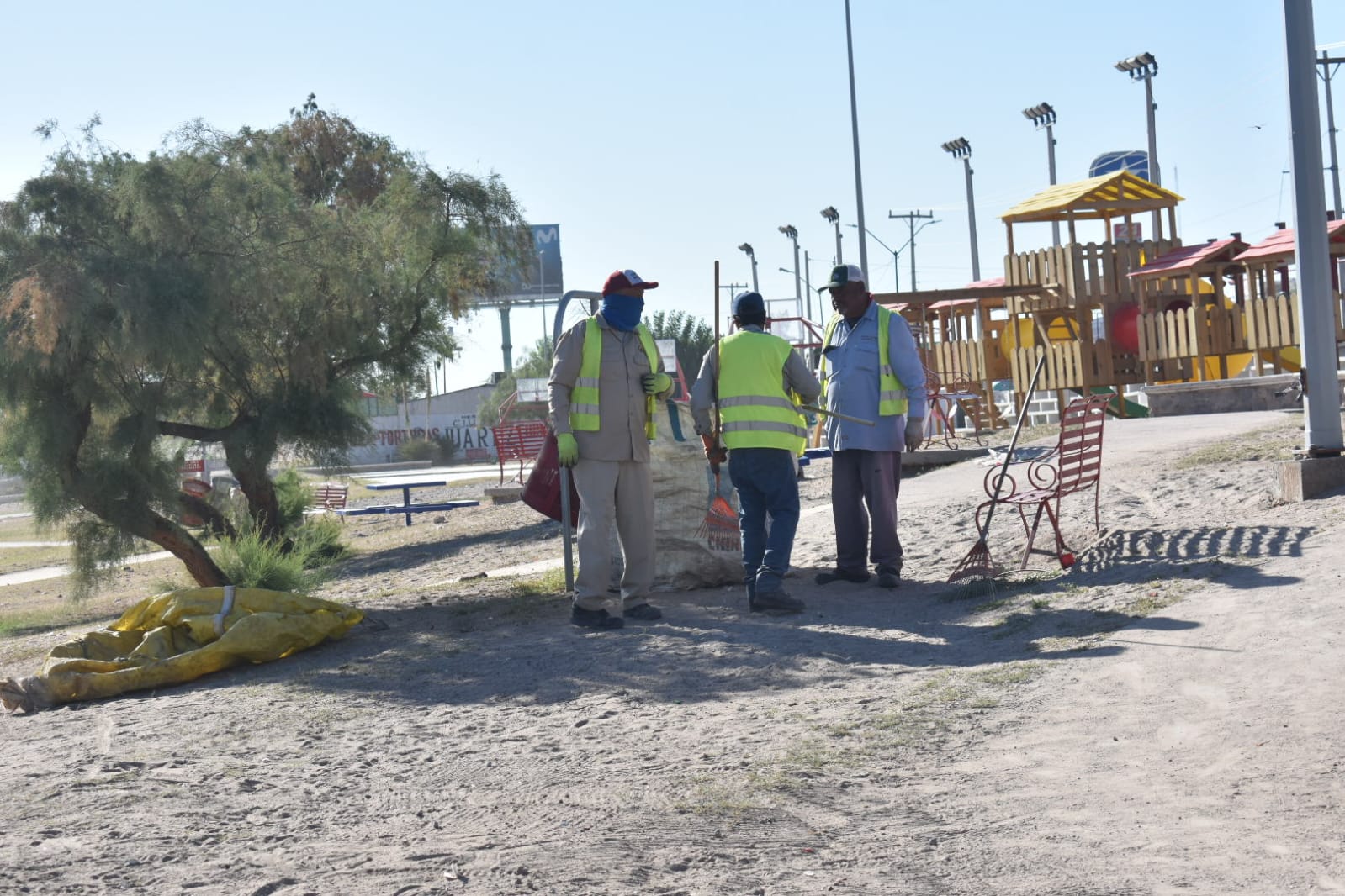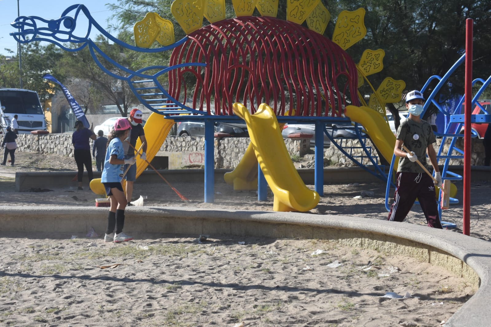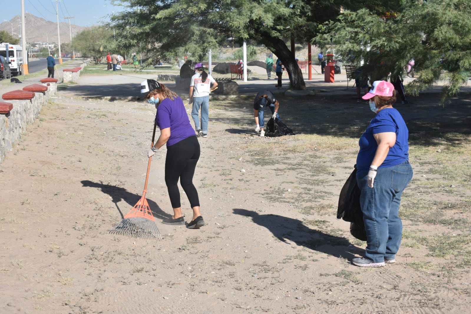Esta mañana, un equipo de 80 personas se unió a los trabajos implementados por la Dirección de Limpia en el Parque Las Tortugas, ubicado en el cruce del bulevar Bernardo Norzagaray y calle Helio.