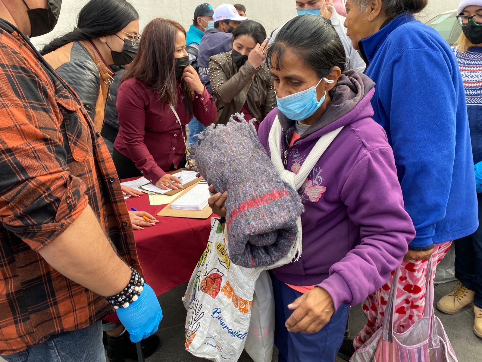 En apoyo a este movimiento, se solicitó la participación de la Dirección de Desarrollo Social, quienes entregaron cobijas para estas mismas personas y bolos para niños y personas de la tercera edad.