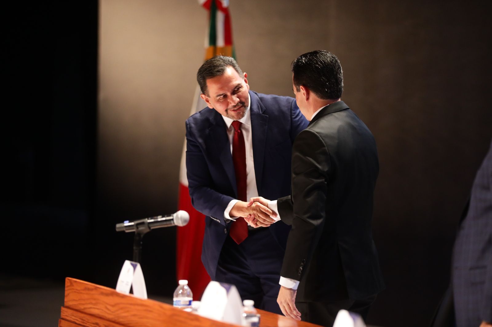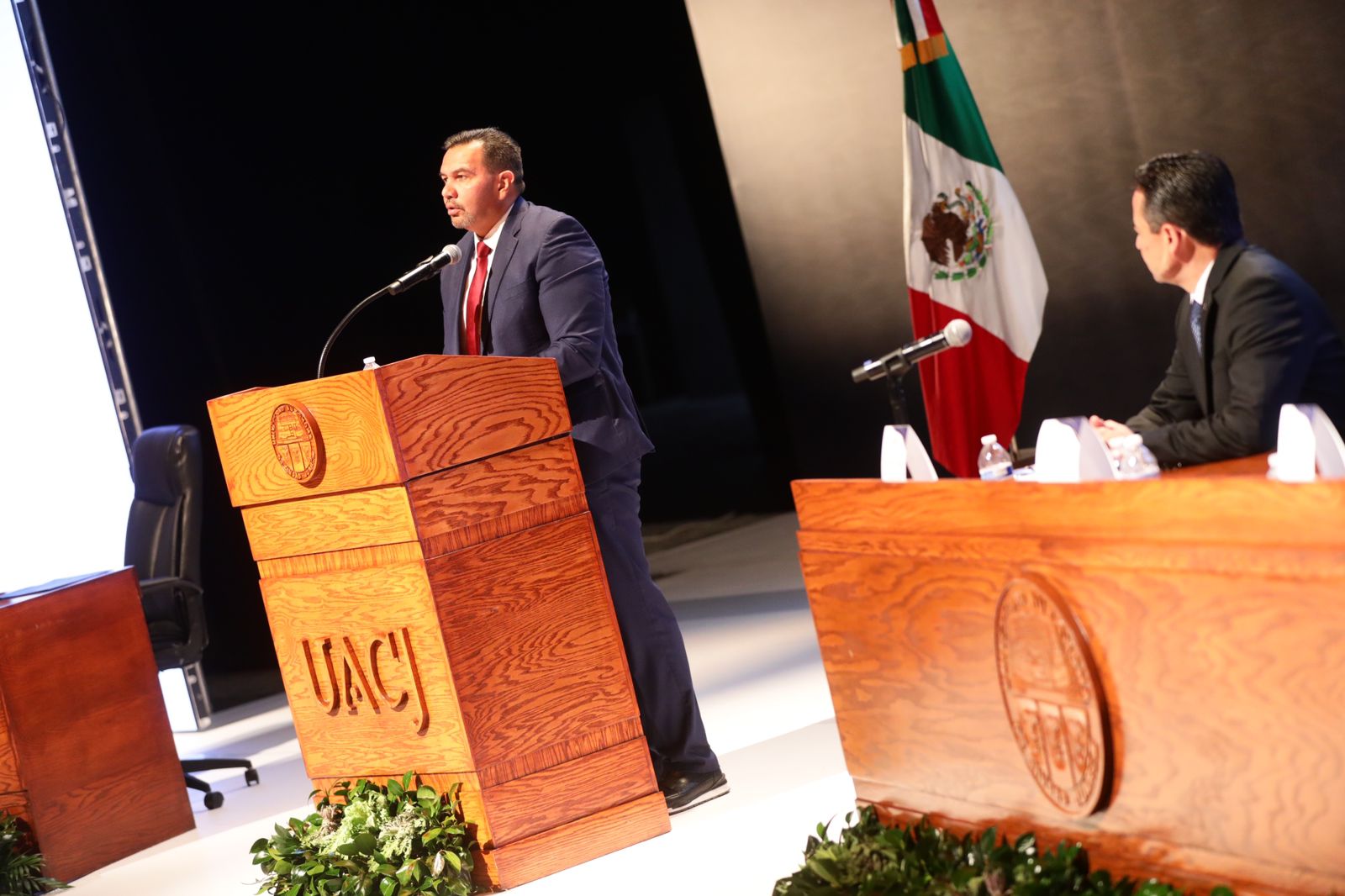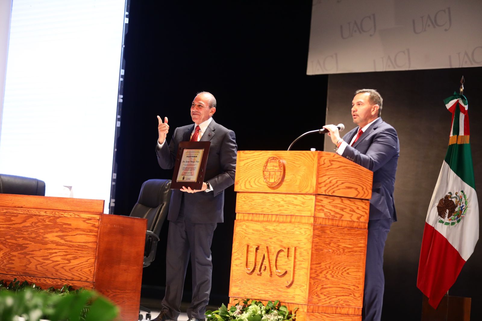 El evento se llevó a cabo en el teatro Víctor Hugo Rascón Banda del Centro Cultural Paso del Norte, donde el alcalde agradeció el apoyo del rector saliente, ya que trabajaron de manera conjunta en pro de la comunidad juarense.