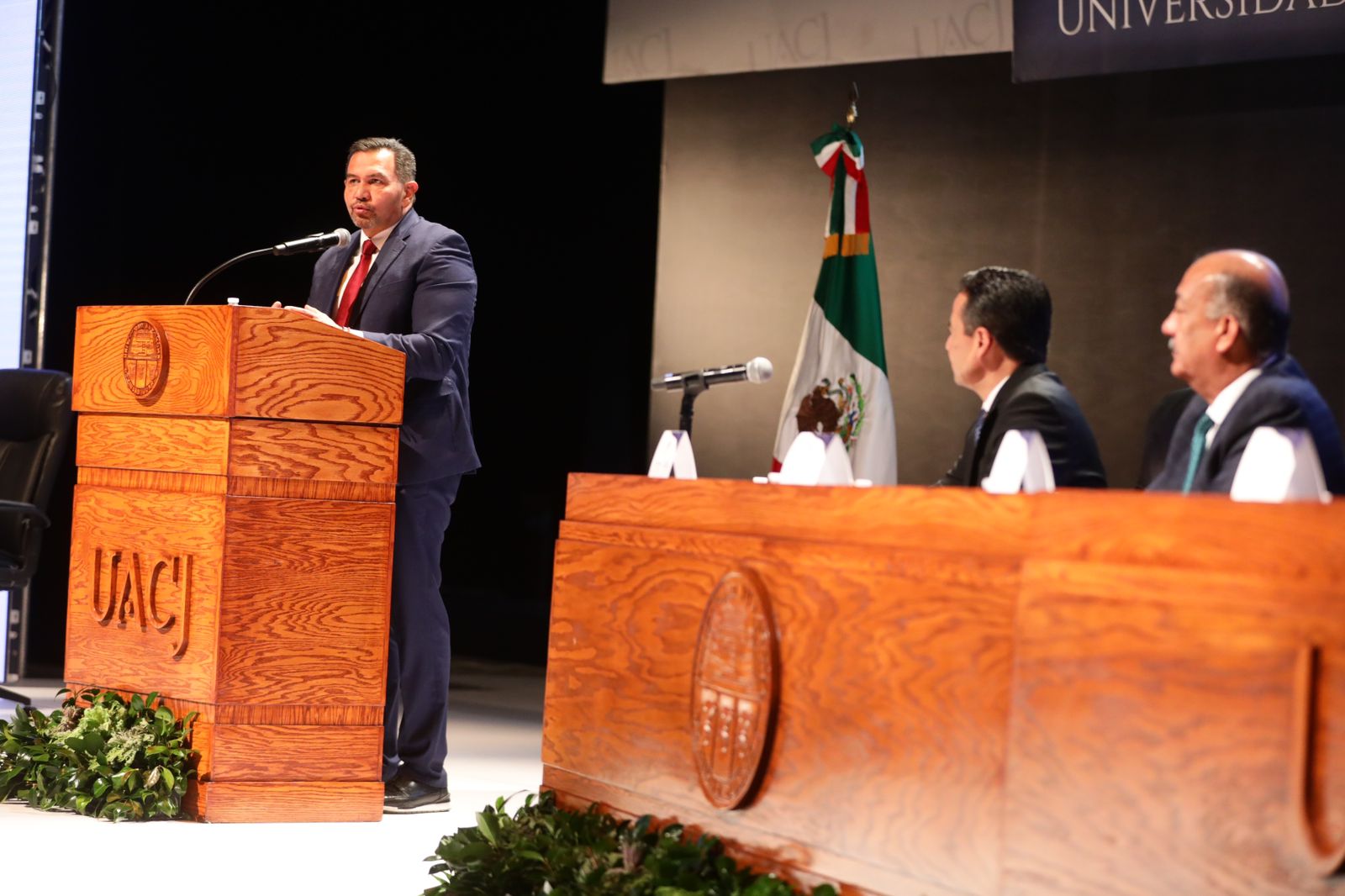 En la toma de posesión del nuevo rector estuvieron la Diputada Elizabeth Guzmán, presidenta del Congreso del Estado de Chihuahua; el general brigadier de Estado Mayor, César Gutiérrez López, comandante de la Guarnición Militar de Ciudad Juárez y Alfonso Hernández Téllez, en representación de Educación Superior Universitaria.