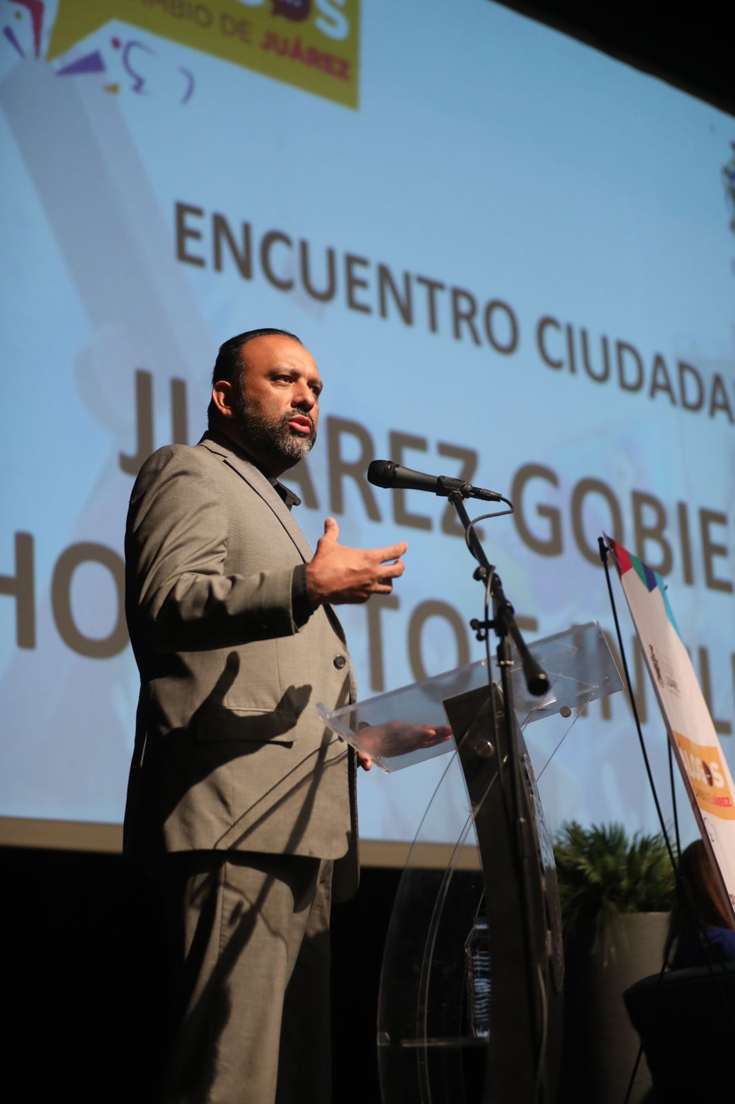 "Esta es la tercera edición de los encuentros ciudadanos con el tema Juárez Gobierno Honesto e Incluyente, gracias por estar aquí presentes", dijo.