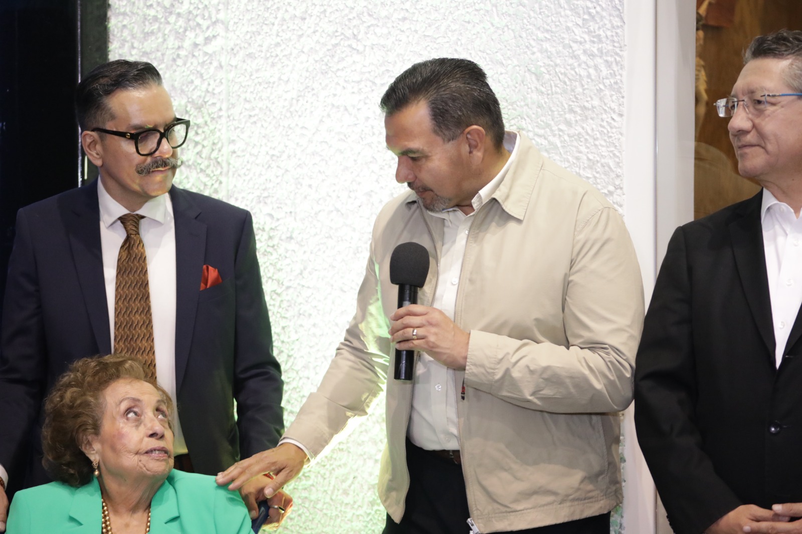 El Presidente Municipal, Cruz Pérez Cuéllar, acudió a la inauguración de un mausoleo en honor de Don Arnoldo Cabada de la O y a la exposición de pinturas en las instalaciones de la televisora Canal 44, en el marco del aniversario de su fundación.