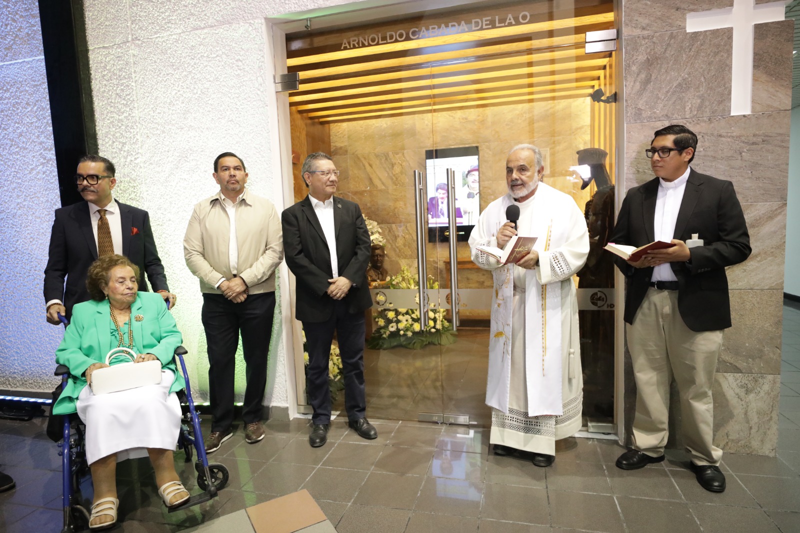 Durante el evento, el Párroco de San Lorenzo, Alfredo Abdo, bendijo el mausoleo que se construyó en las instalaciones del Canal 44, mismo que lleva el nombre de Don Arnoldo Cabada de la O.