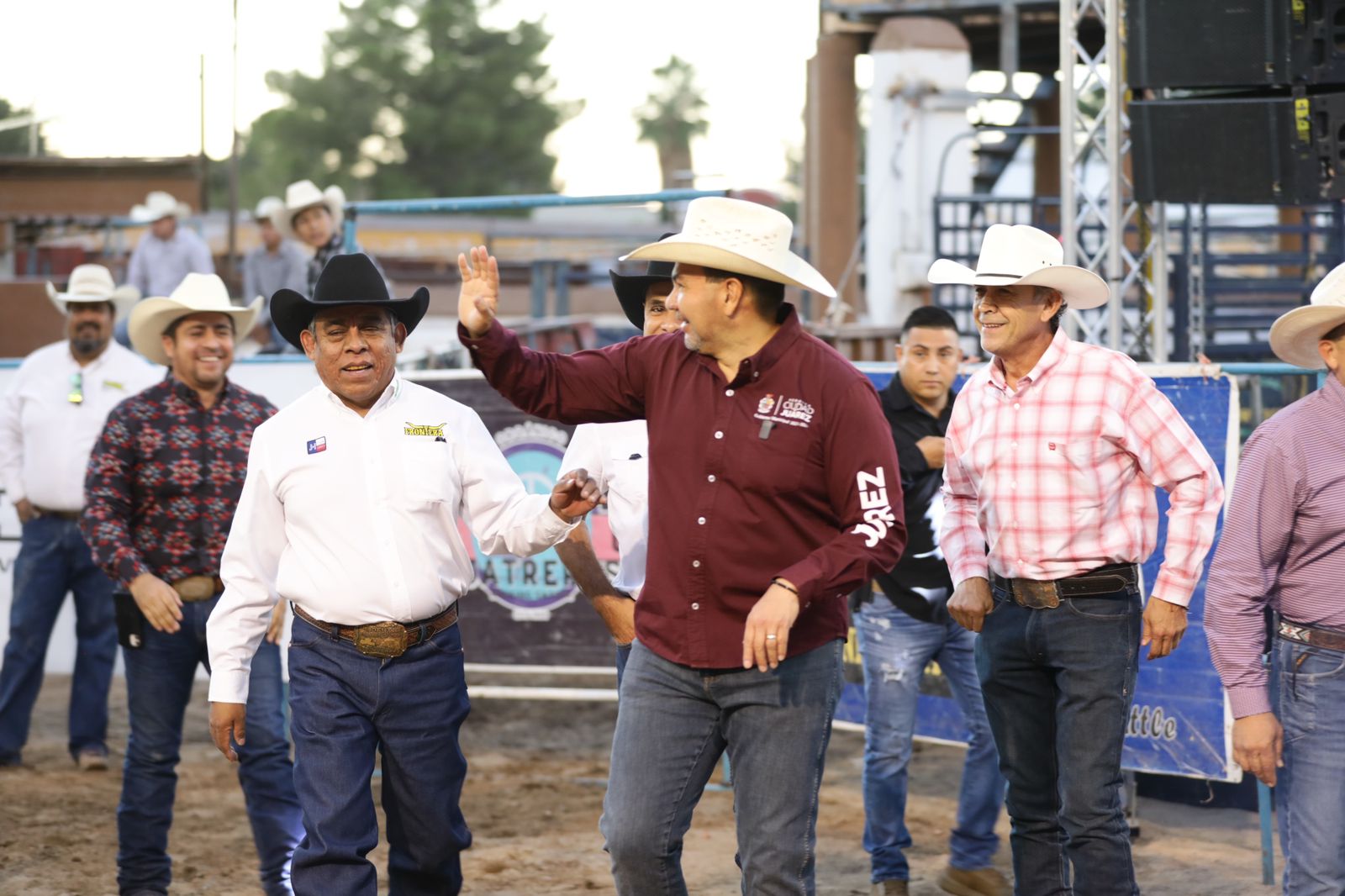 El Presidente Municipal, Cruz Pérez Cuéllar, felicitó al recién electo como director de la Liga Municipal de Rodeo, Gilberto Guevara Corral, asimismo, agradeció la invitación a los demás organizadores del evento.
