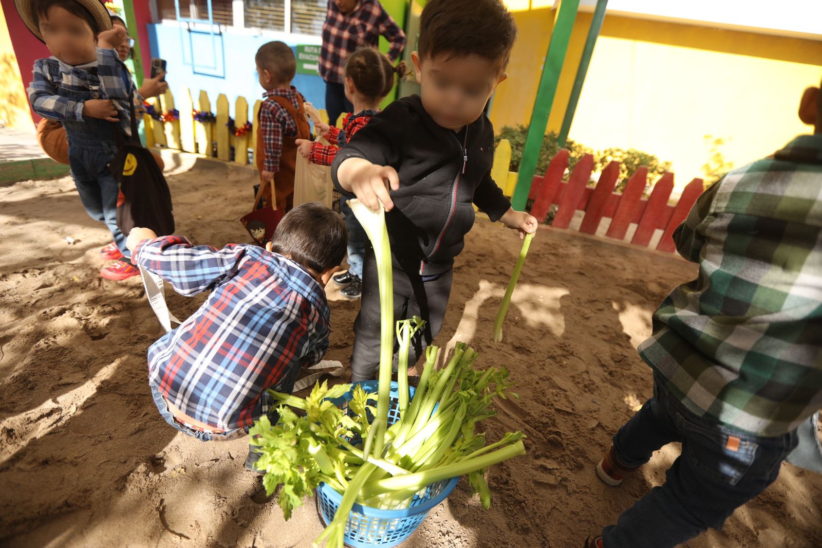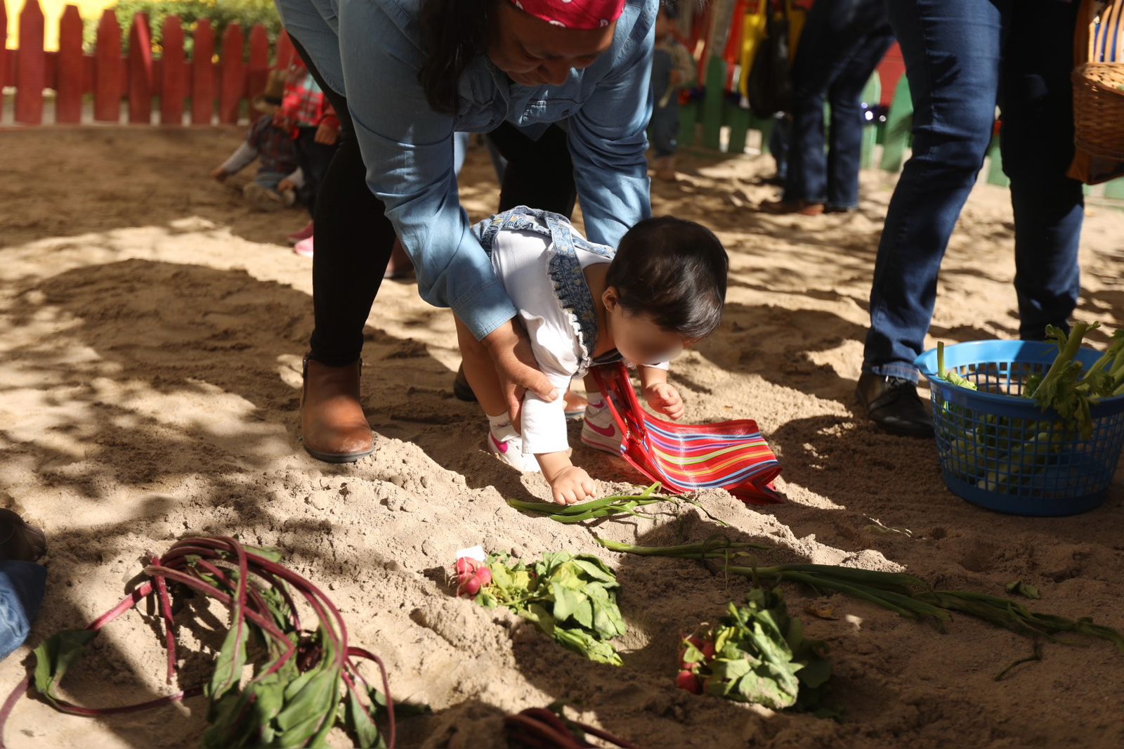 La directora de la Estancia Infantil y Jardín de Niños Eva Sámano de López Mateos, Yossy Yazmín Narváez González, dijo que esta vez tuvieron una dinámica muy divertida y llena de aprendizaje, pues se trató de recolectar frutos y vegetales que previamente enterraron en la zona del arenero.