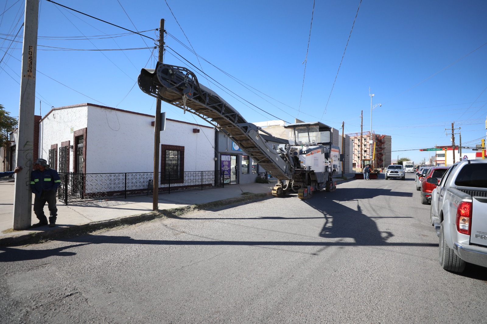 La Dirección General de Obras Públicas informó que esta tarde dieron inicio los trabajos de fresado en la calle Rubén Posada Pompa, como parte de las obras de rehabilitación de la vialidad que será mejorada desde la calle María Dolores Álvarez a la avenida Plutarco Elías Calles.