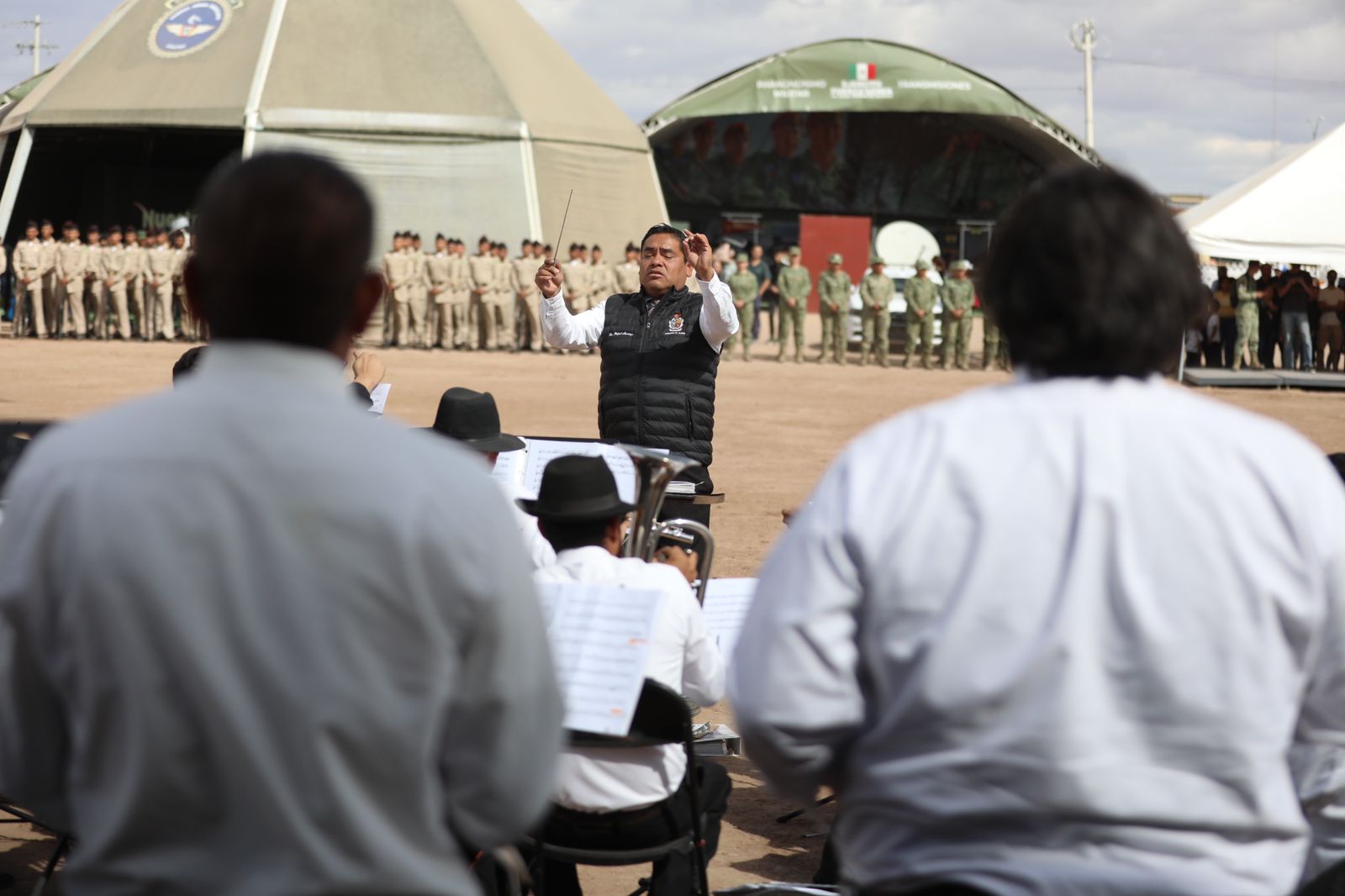En representación de Ricardo Trevilla Trejo, secretario de la Defensa Nacional, estuvo el comandante de la 5ta Zona Militar, General de Brigada, Rubén Zamudio Matías, quien transmitió su gratitud al pueblo de México, particularmente a la comunidad de Ciudad Juárez por abrir las puertas y permitir la instalación de este majestuoso escenario.